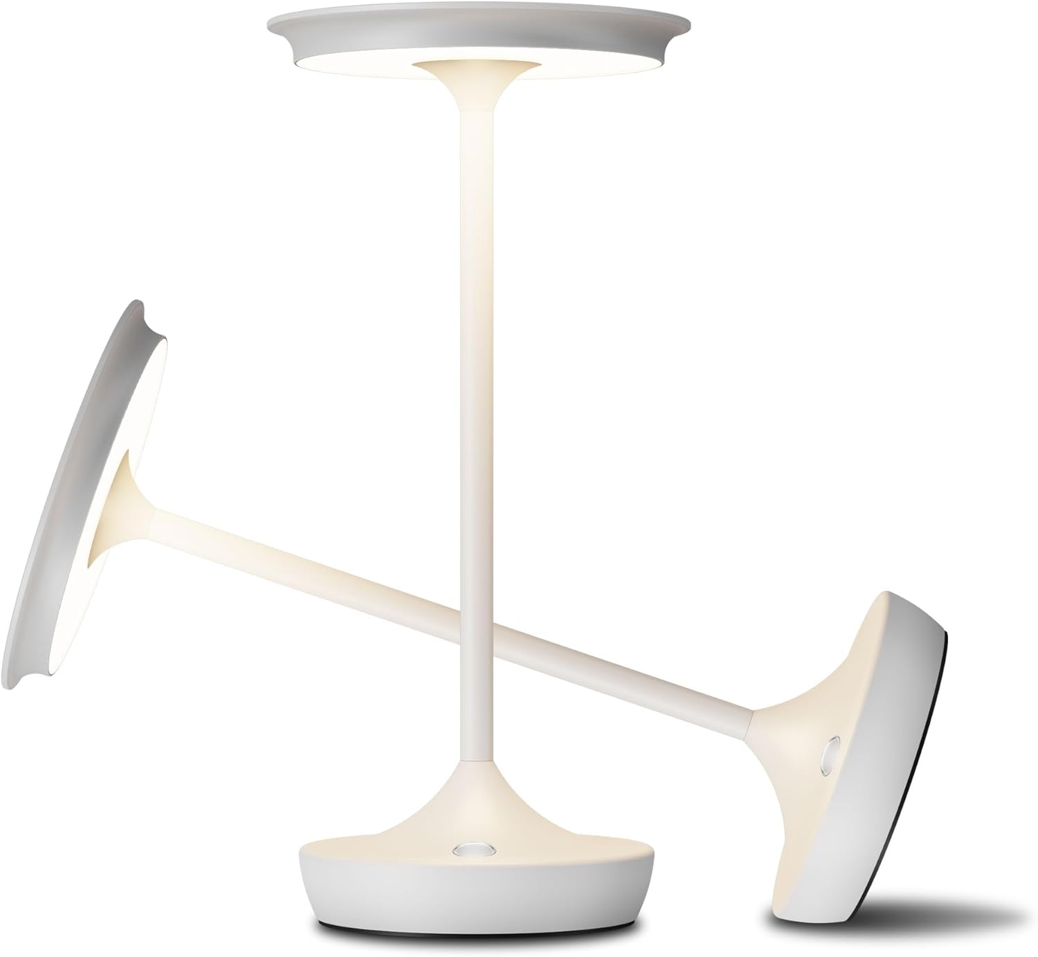 YHT Cordless Rechargeable Table Lamps, Portable 6000mAh Battery Desk Lamp Waterproof 3 Color Stepless Dimming LED Table Light with Memory Function for Outdoor/Dinning/Patio/Restaurant (White 2Pack)