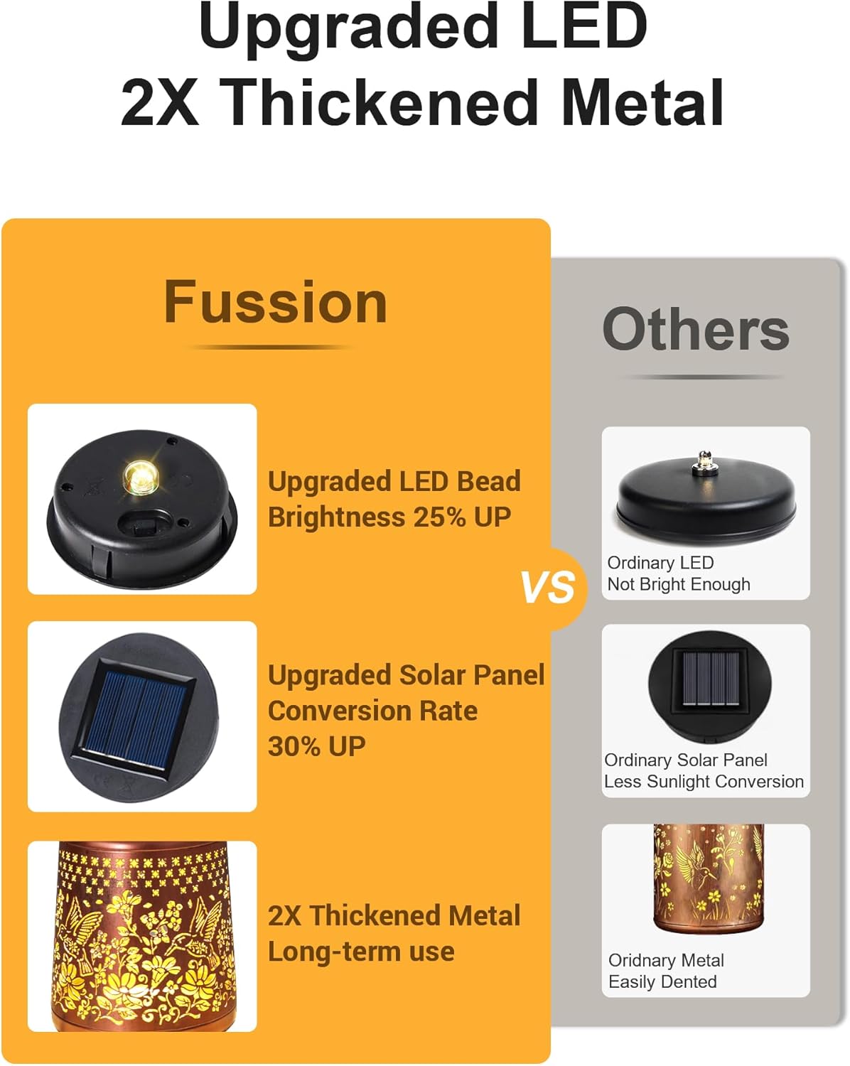 - 【Enhanced Brightness & 2X Thickened Metal】- Enjoy brighter and more vivid illumination with upgraded LED bead that provide 25% more brightness than traditional models. The delicate hollow out metal veneer ensures the Hummingbird pattern is displayed with stunning clarity. Made from 2X thickened metal, these solar lanterns for porch are built to last, offering exceptional durability and resistance to bending or denting. Additionally, the solar panel power efficiency has been improved by 30%, improve energy conversion for longer lighting time.
