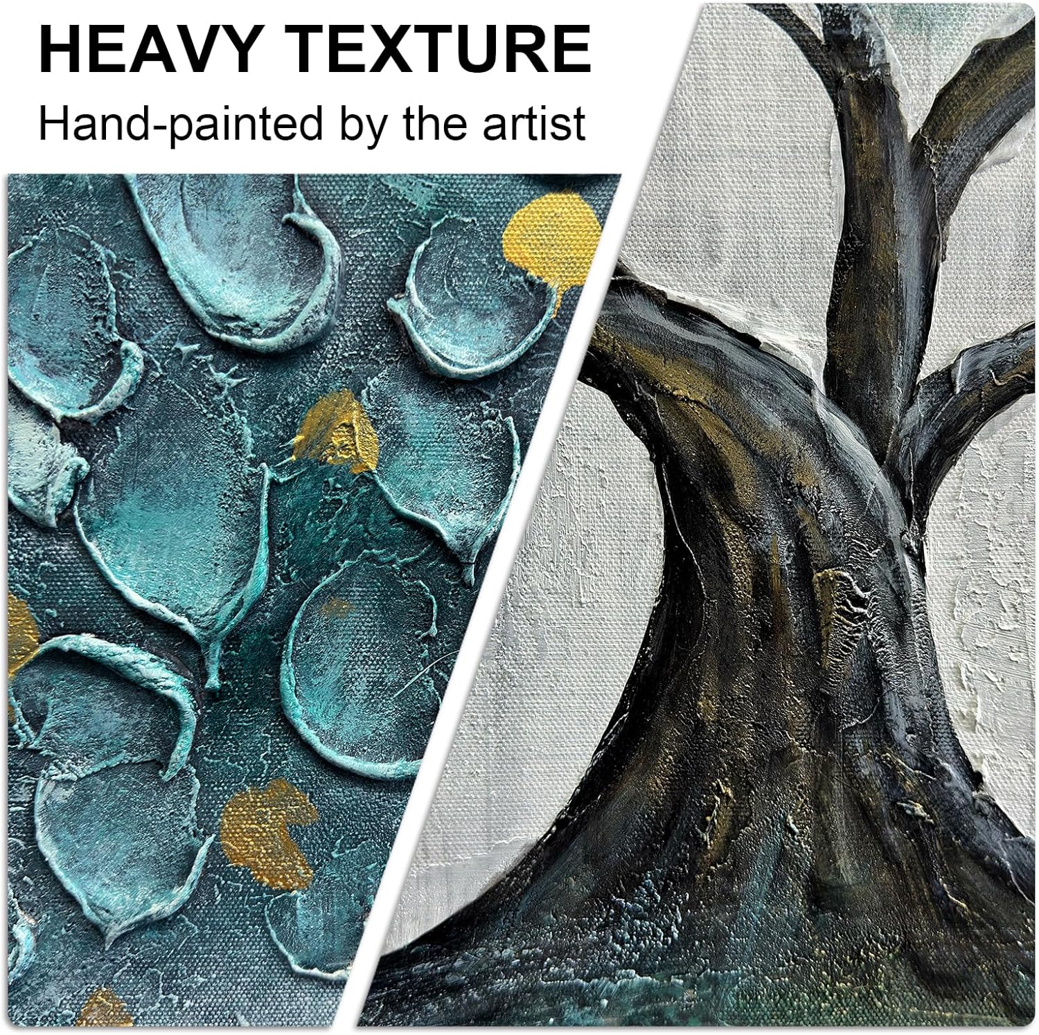 • 100% Hand-Painting Oil Painting: Each Tree of Life Wall Art is hand-painted by artists, showcasing authentic brushstrokes and dimensional textures that surpass flat prints. The refined canvas texture elevates it to museum-quality artistry