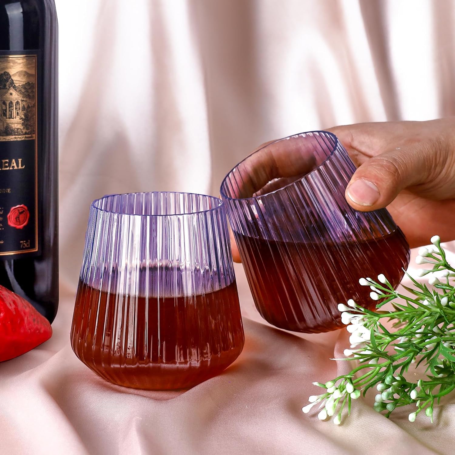 • 【Superior Material】Our stemless wine glasses are made of quality PET plastic which is shatterproof, recyclable and BPA-free, so you can use these clear wine glasses with confidence. you can dispose or hand wash them for next events! NOT dishwasher-safe!