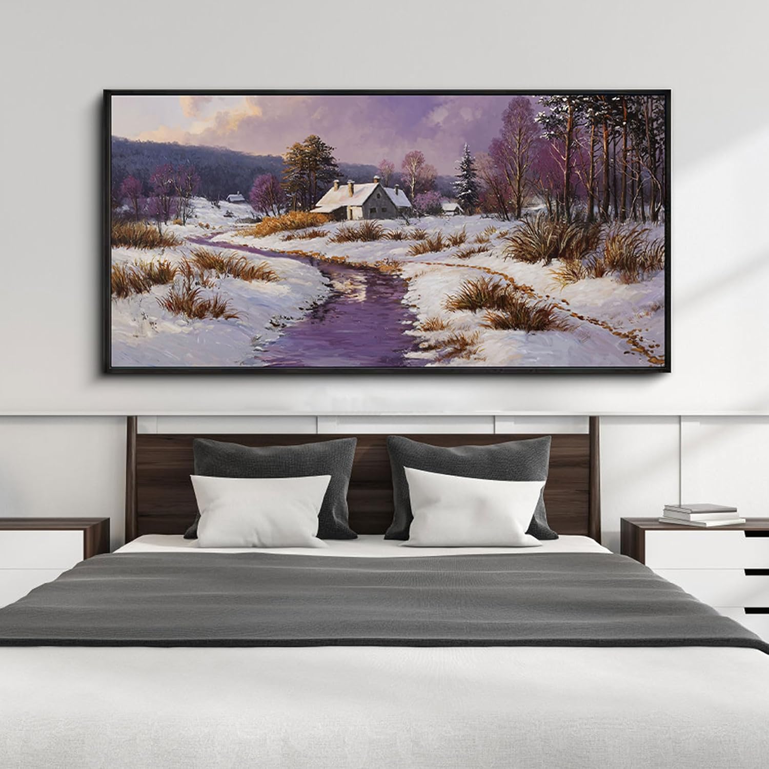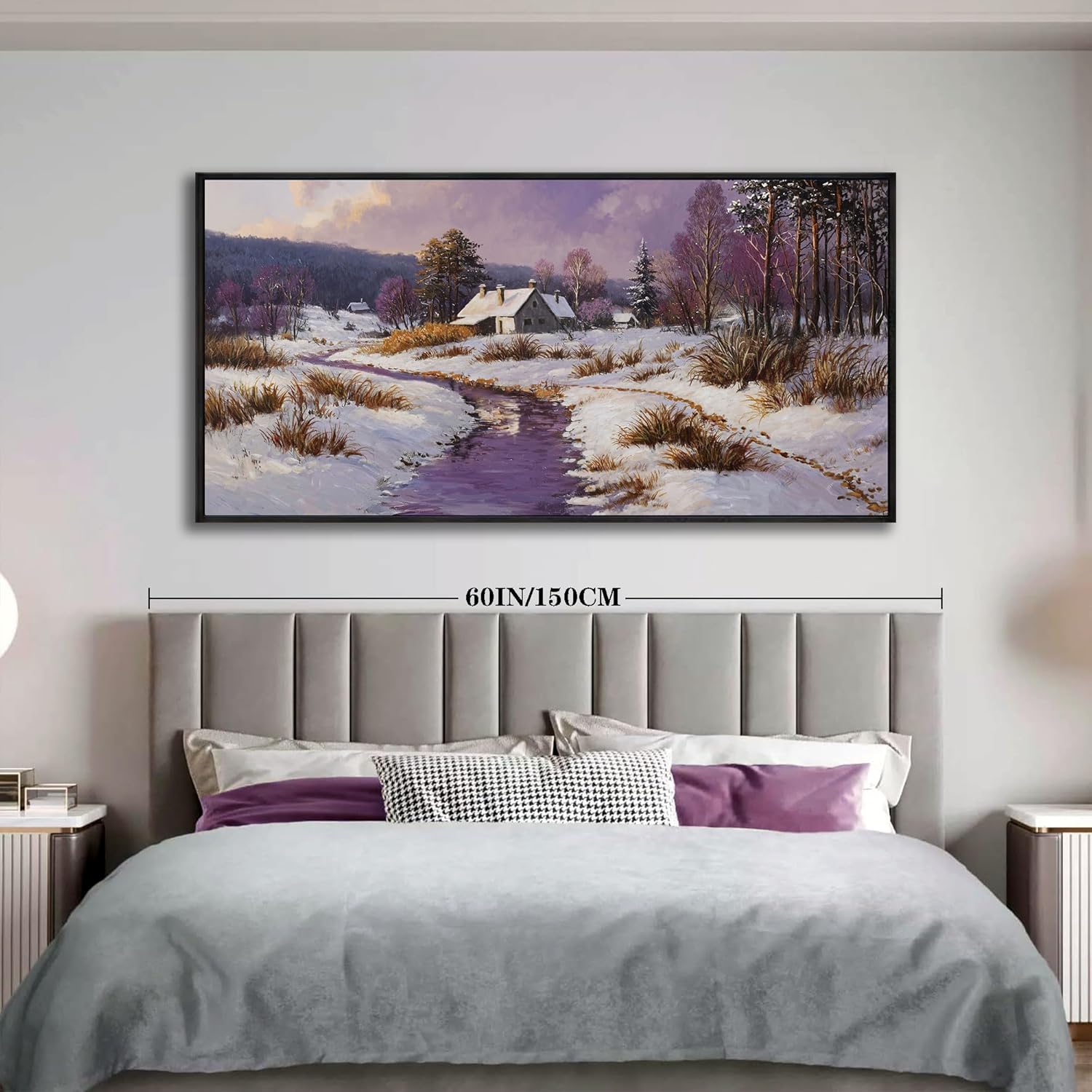 yiijeah Extra Large Canvas Wall Art - Living Room Wall Decor Purple Snowy Country Paintings Framed Wall Pictures Artowrk for Walls Bedroom Nature Rustic Landscape for Office Home Decor
