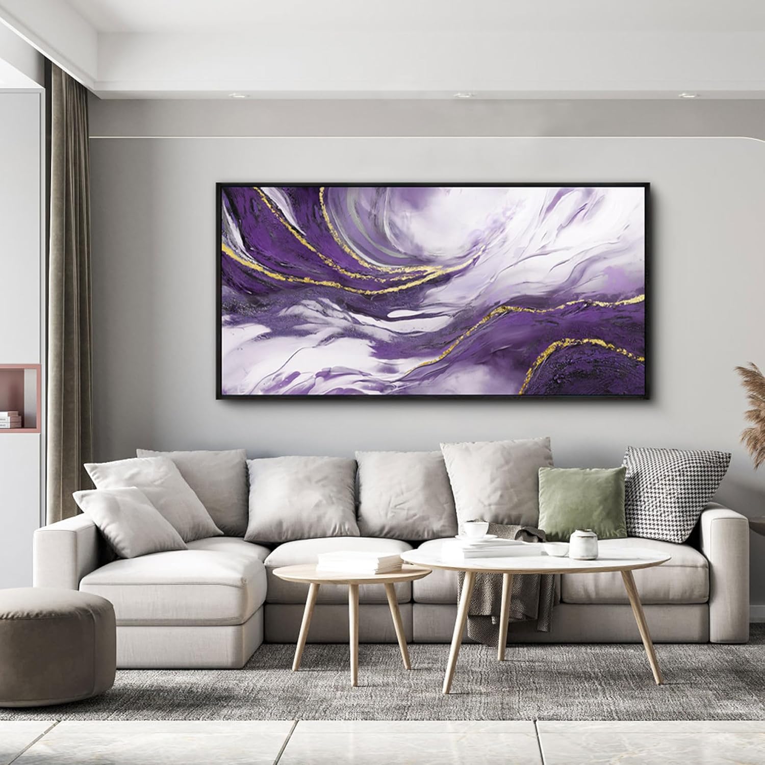 • 【Purple wall art for living room】The framed artwork measures 58x29 inches and the solid wood frame holds up the canvas and is very sturdy.