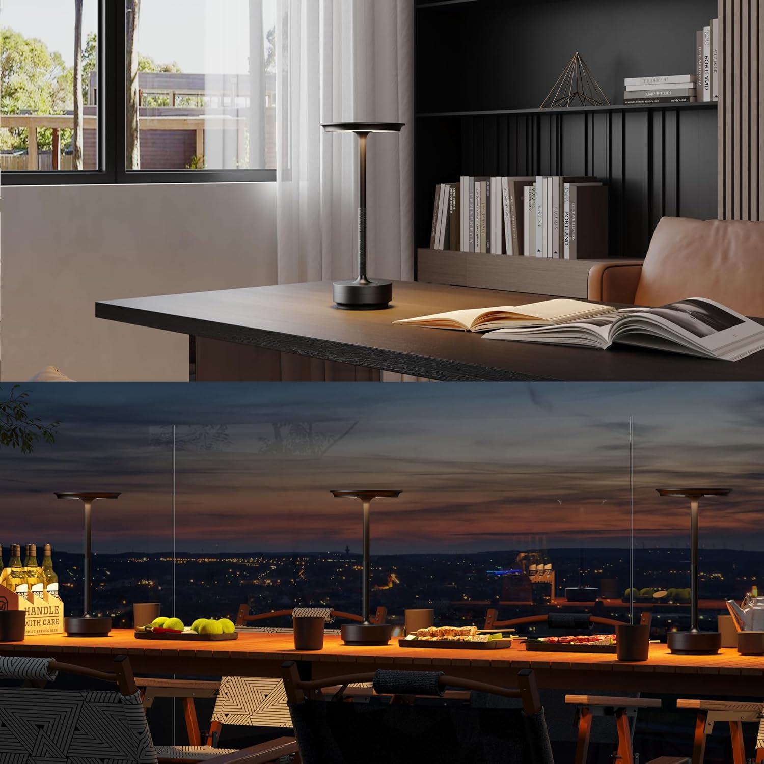 Cordless Table Lamp, LED Rechargeable Table Light with 3 Temp Settings, Stepless Dimming, 5000mAh Battery, USB-C, Memory, Aluminum Alloy, for Home, Patio, Restaurant, Outdoor. Black