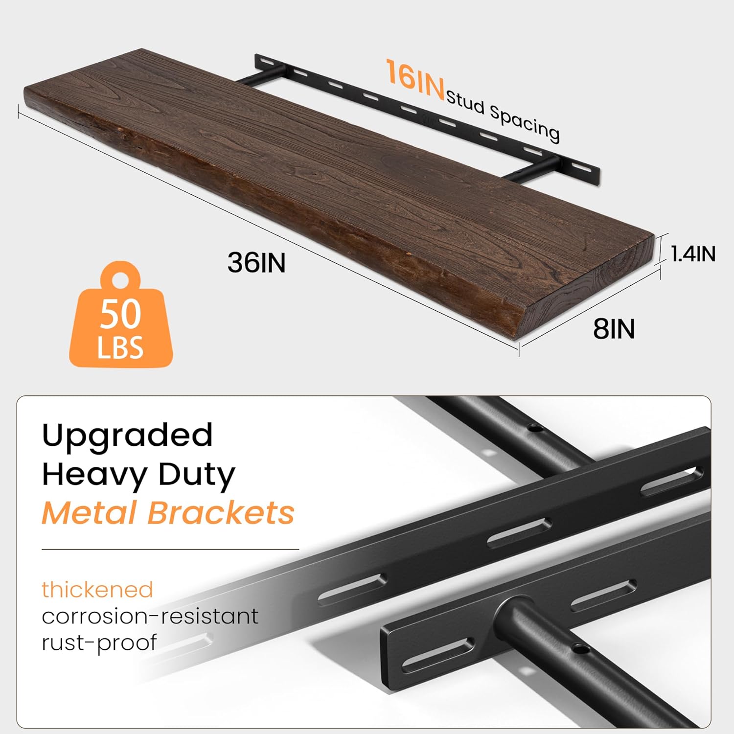 - Decorative & Practical: 36 inch floating shelves are 8 inches deep and feature a rustic design, perfect for displaying photos, trophies, plants, and books. The floating shelves add aesthetic appeal to your home while serving a practical purpose