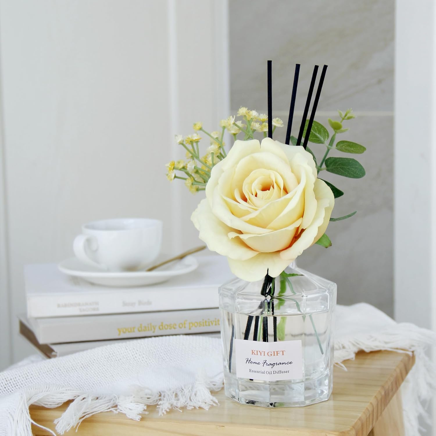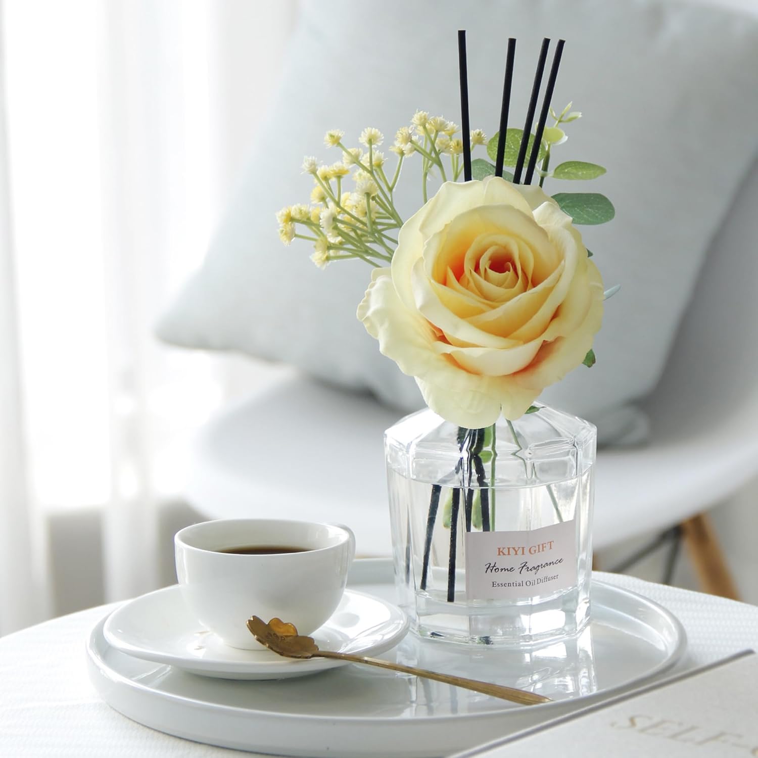 • COMPLETE SET: Includes 6 reed diffuser sticks and decorative artificial flowers for immediate setup and enjoyment