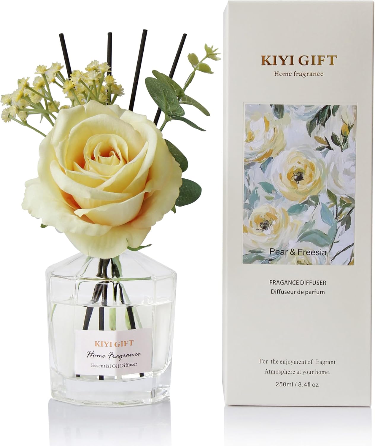 Reed Diffuser Set -8.4 fl oz Scent Diffuser with 6 Reed Sticks, Home Fragrance,Reed Diffuser for Bathroom Shelf Decor (Pear Freesia)