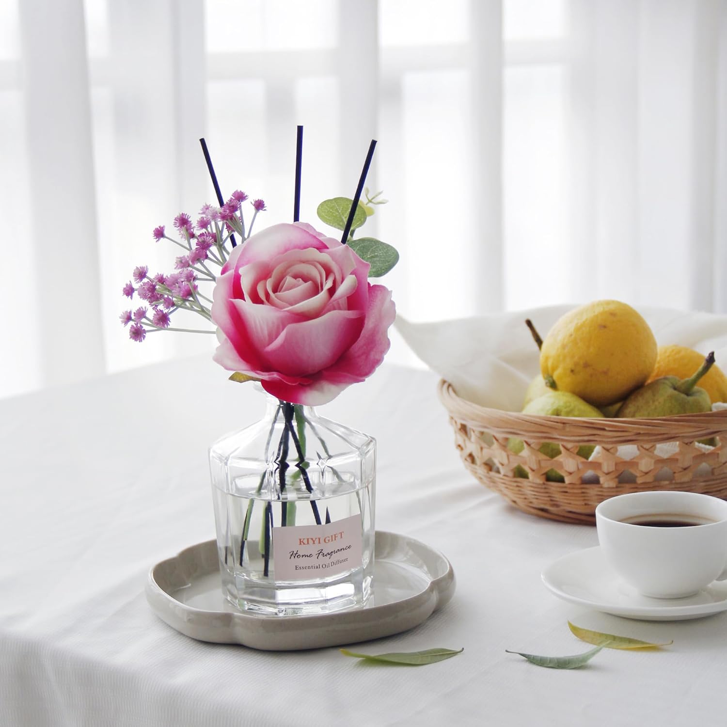 • COMPLETE SET: Includes 6 reed diffuser sticks and decorative artificial flowers for immediate setup and enjoyment