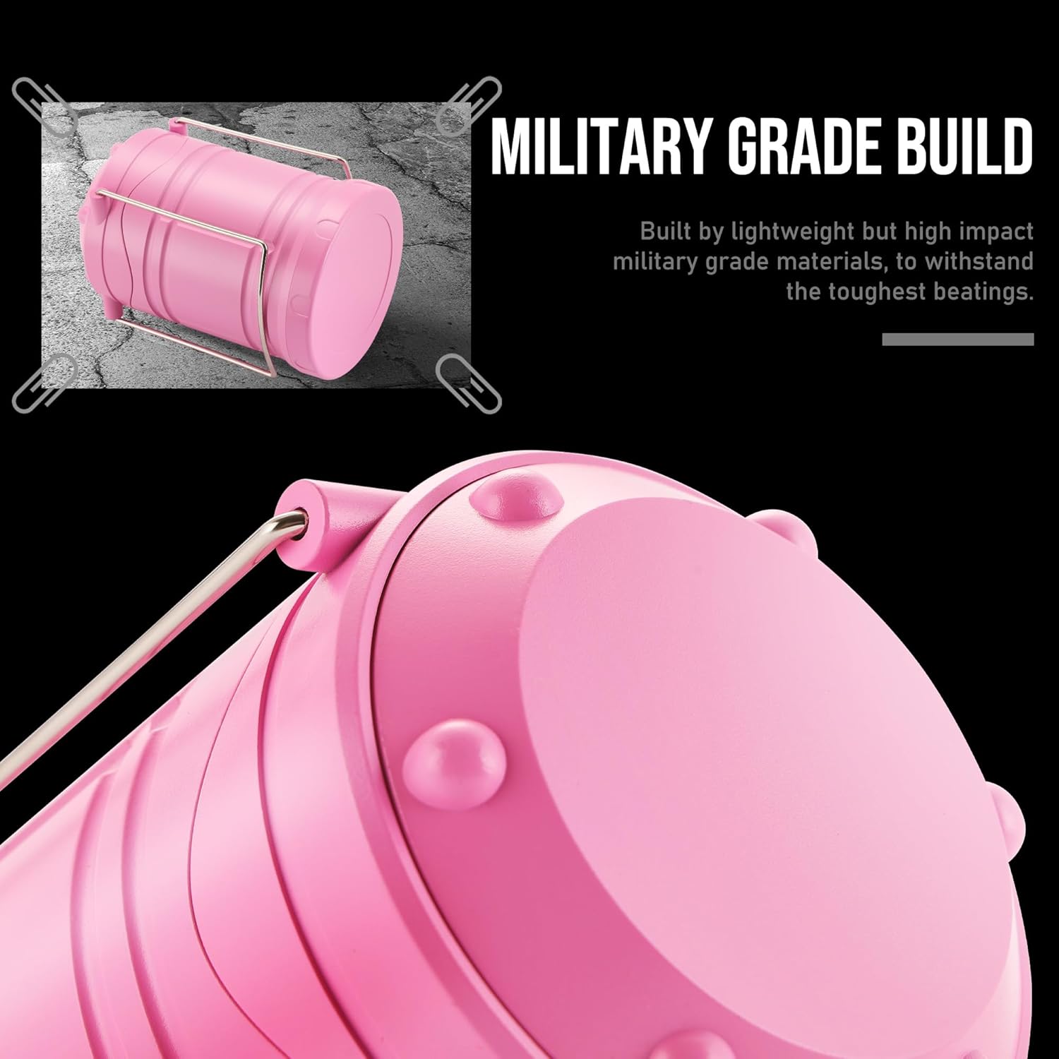 • COMPACT & COLLAPSIBLE: Features foldaway handles for easy suspension and portability, collapsible to store when not in use; Pull up the handles to turn it on or control the brightness, no switches required