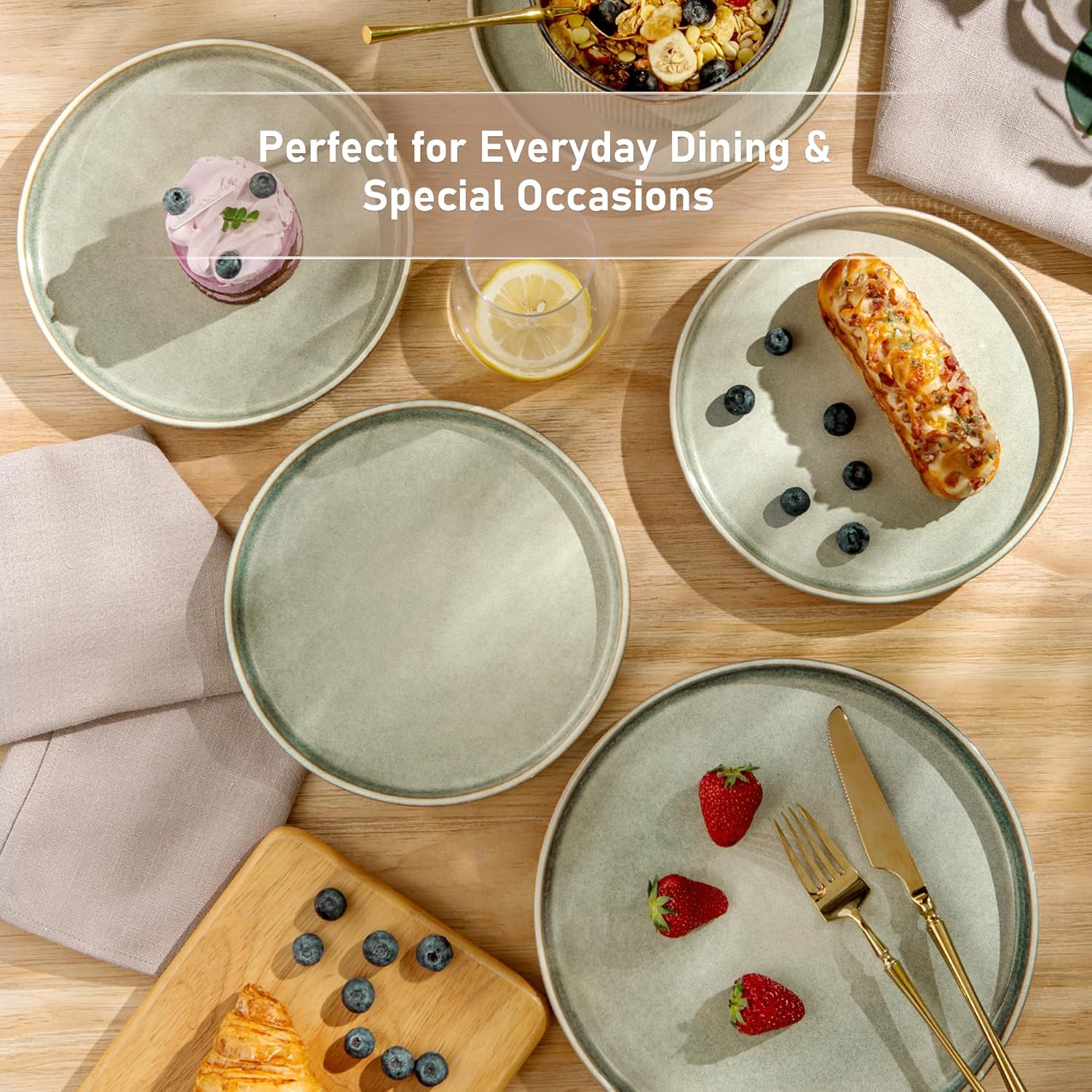 - Healthy, Lead-Free & Chip-Resistant: Crafted from premium, double-fired ceramic, this dinnerware is lead-free and cadmium-free, ensuring no harmful chemicals leach into your food. The durable stoneware construction makes it exceptionally chip-resistant and built for long-lasting daily use.