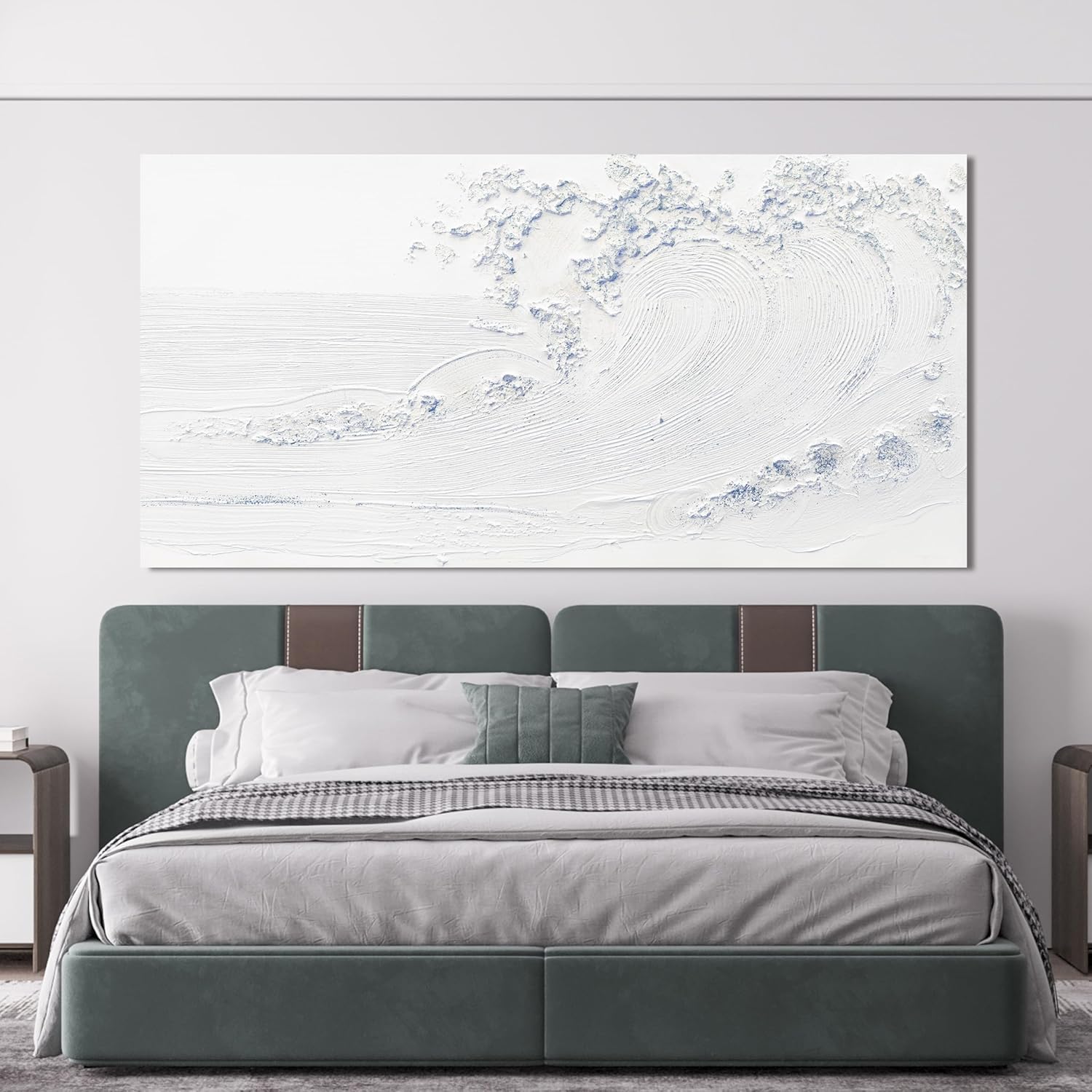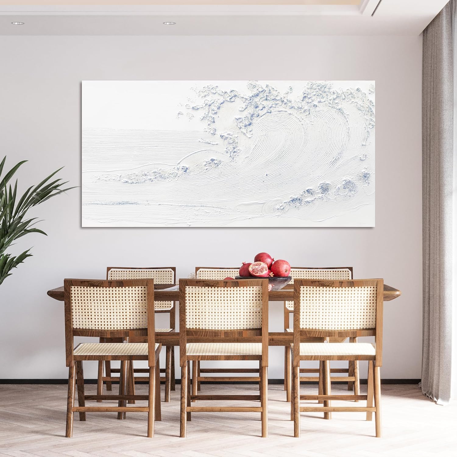 Canvas Wall Art Decor Large Wall Art Pictures for Living Room Landscape Coastal Wall Art Decor Wave Artwork for Walls White Blue Wave Wall Art Prints Art Work for Home Office Room Wall Decor 29"x58"