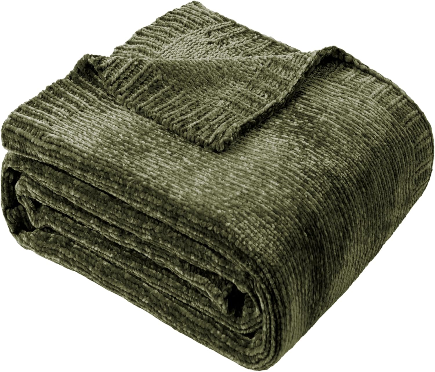BATTILO HOME Olive Green Chenille Throw Blanket for Couch, Cozy Knit Throw Blanket for Bed Sofa Outdoor, Super Soft Warm Green Blankets Chenille Blankets for Home Decor, 51"x67"