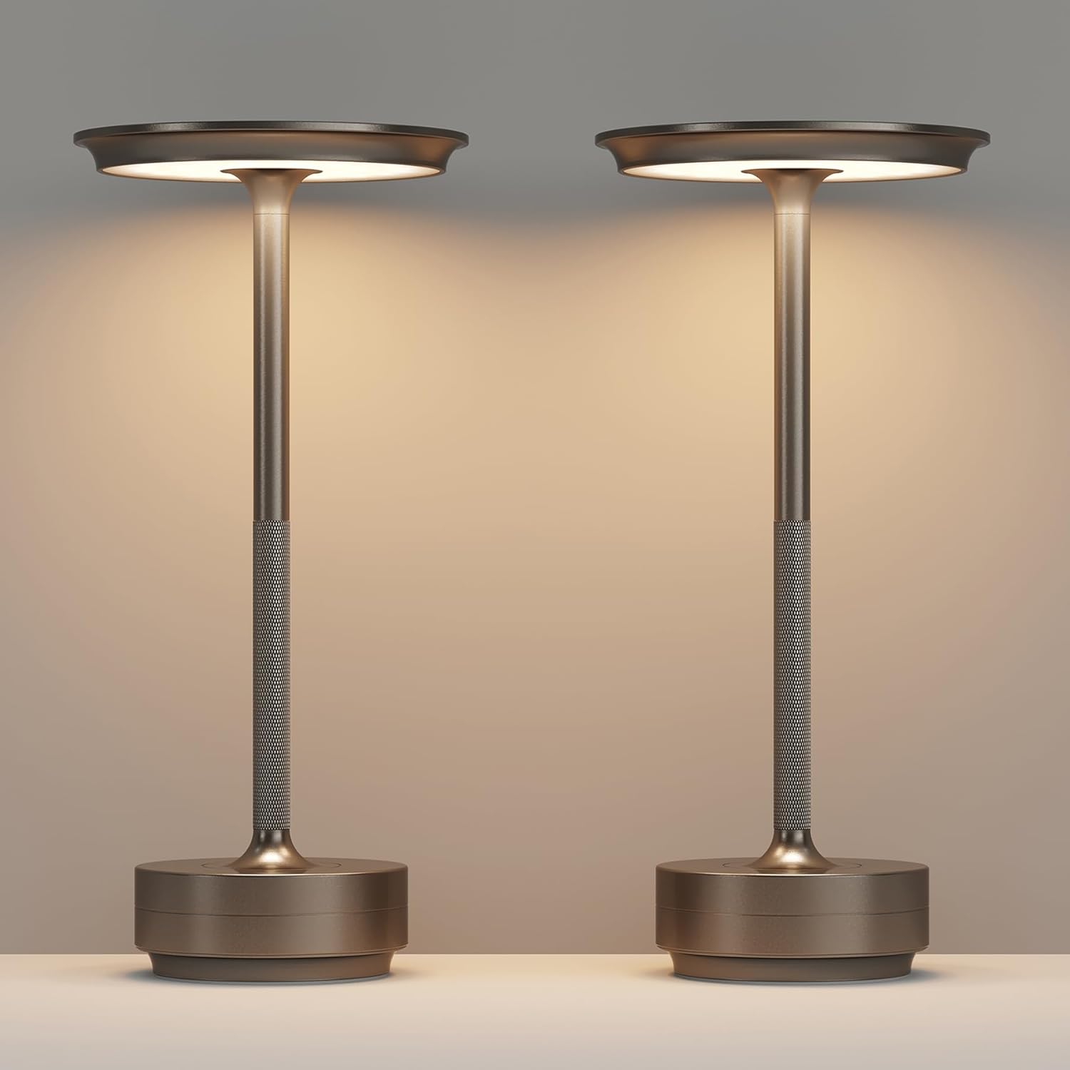 2 Pack Cordless Table Lamps Rechargeable, Portable 5000mAh LED Table Light, 3 Color Stepless Dimming Battery Powered Table Lamp for Bedroom/Home/Restaurant/Outdoor.(Cafe)