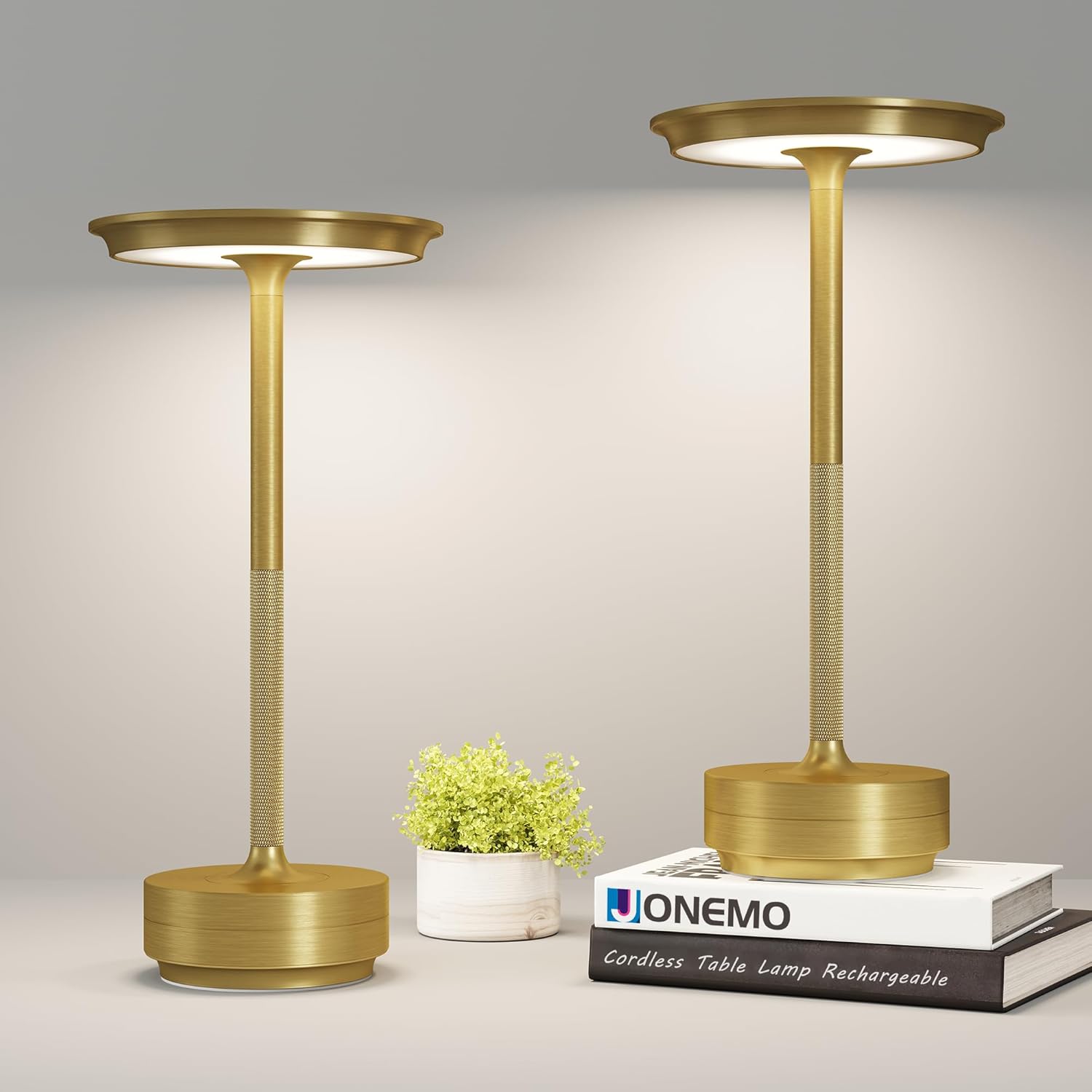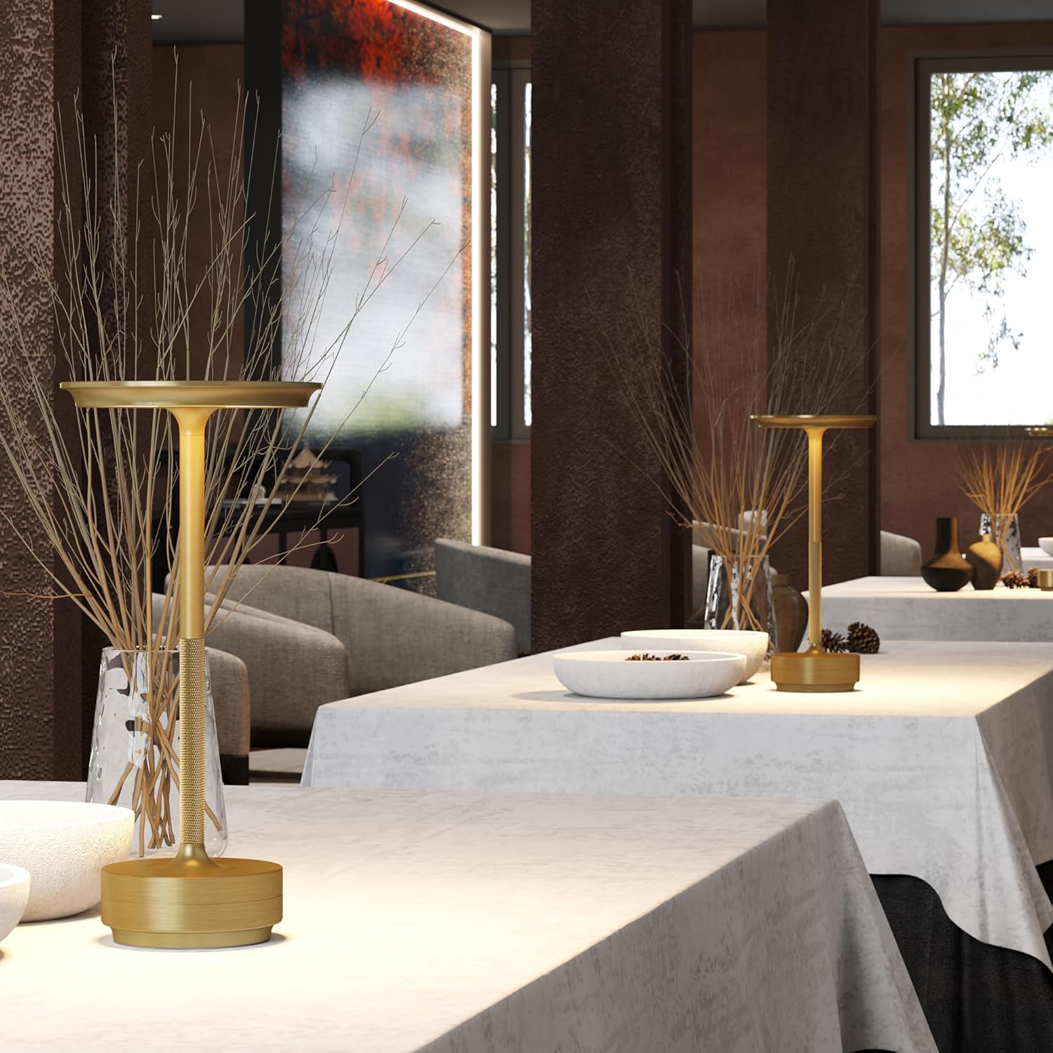 2 Pack Cordless Table Lamp, LED Rechargeable Table Light with 3 Temp Settings, Stepless Dimming, 5000mAh Battery, USB-C, Memory, Aluminum Alloy, for Home, Patio, Restaurant, Outdoor. Gold