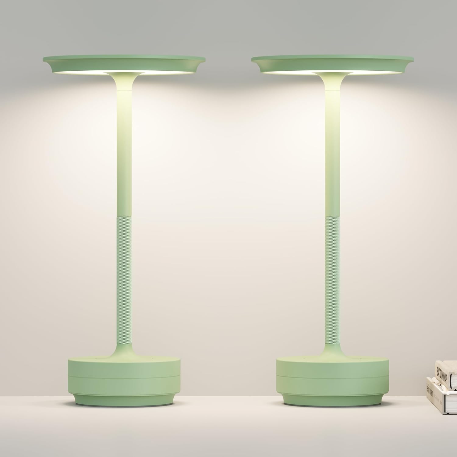 Cordless Rechargeable Table Lamps,Portable 5000mAh Battery Desk Lamp IP54 Waterproof 3 Color Stepless Dimming LED Table Light,Patio,Restaurant, Cafe, Dining Table Decor(2P Apple Green)