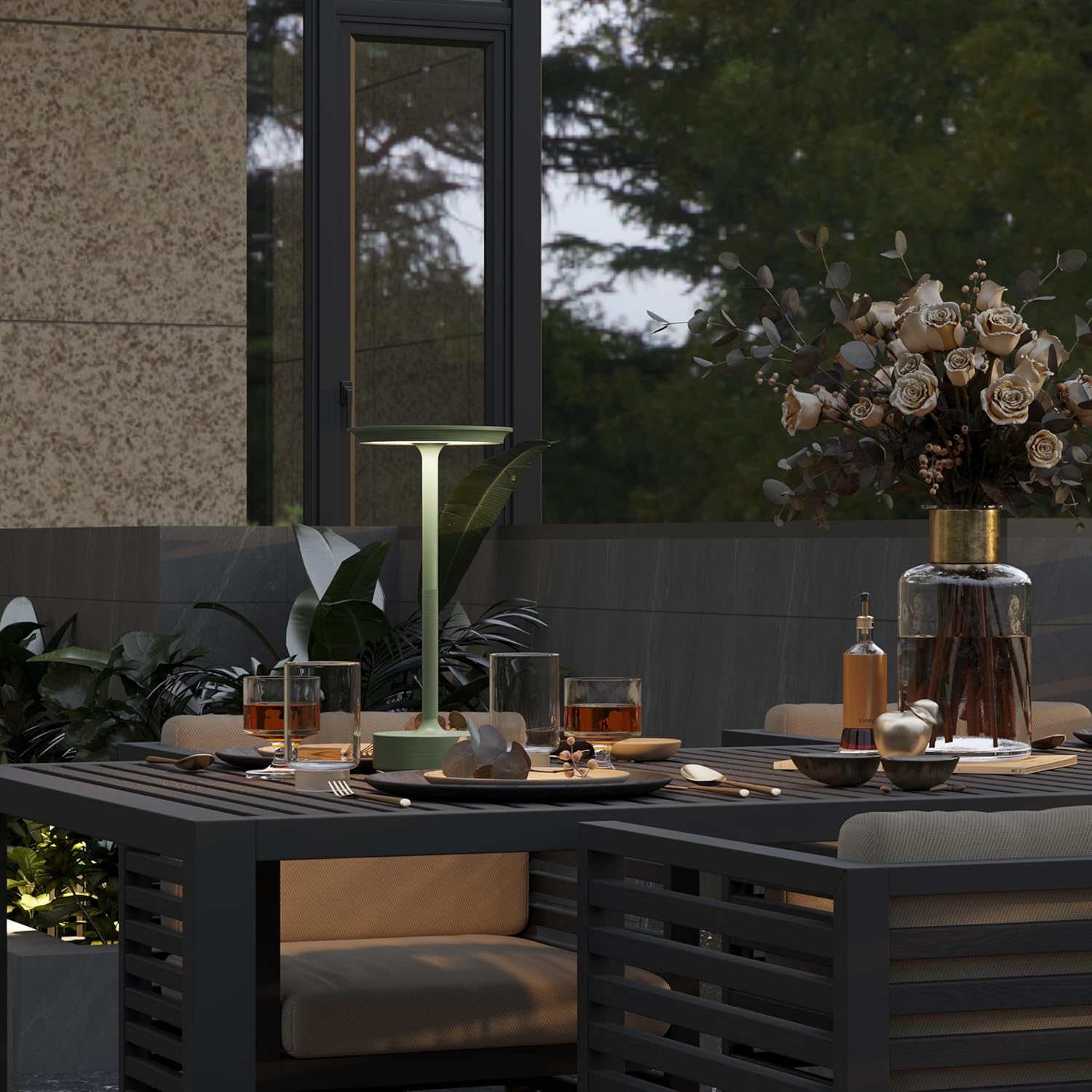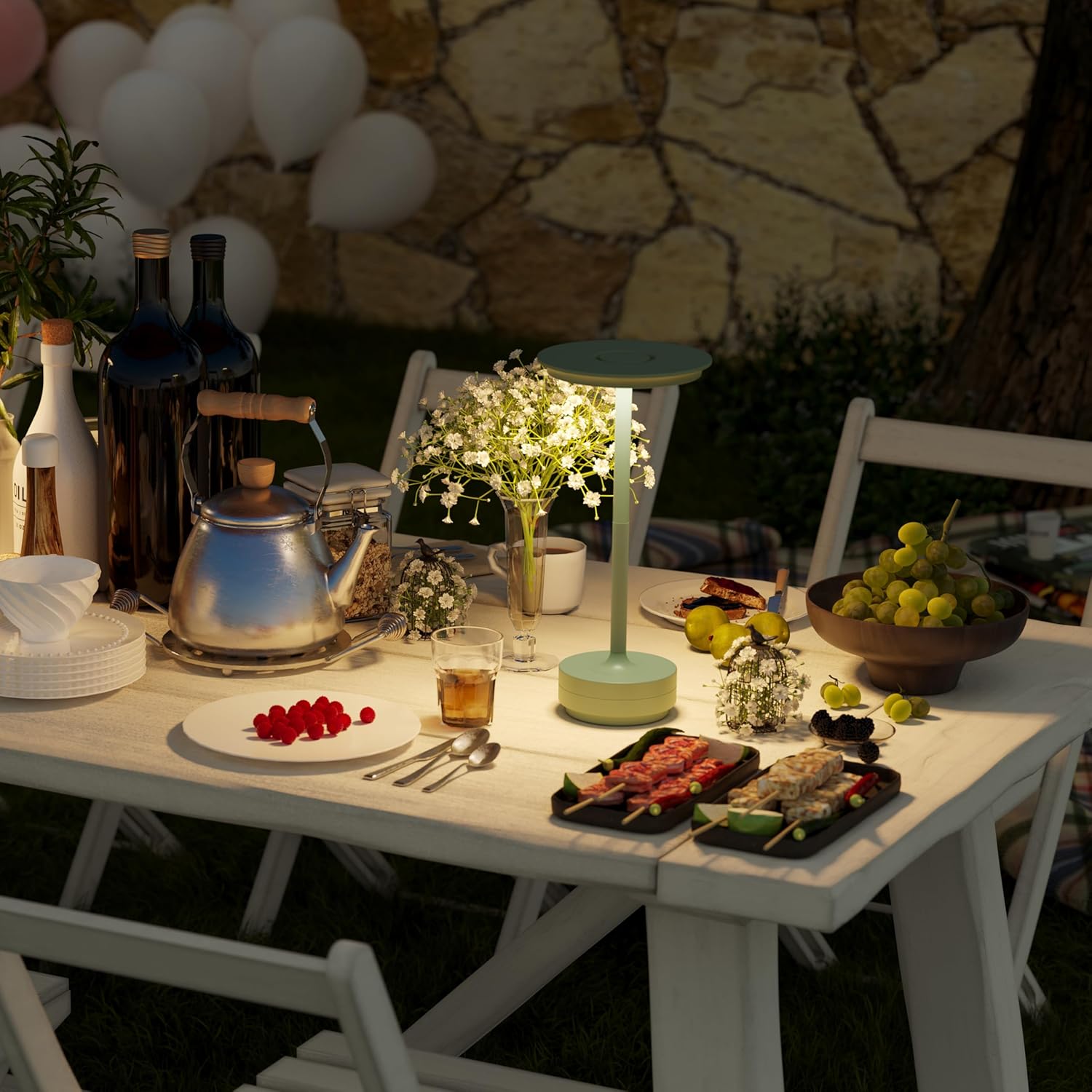 - Ultra-portable and Cordless design, rechargeable table lamp designed for lighting: weight 1.3 lbs, 3-color stepless dimming: one-touch sensor switch on the top, can be used with one hand/backpack side pocket, the bottom is made of silicone non-slip design, solid and durable. Brightness/on/off can be adjusted anytime with one hand, short press to switch 3 color temperatures - amber light (3000K)/natural light (4000K)/white light (6000K); long press to adjust the brightness (100%-10%). Provides stable, eye-friendly decorative lighting for indoor/outdoor restaurants.