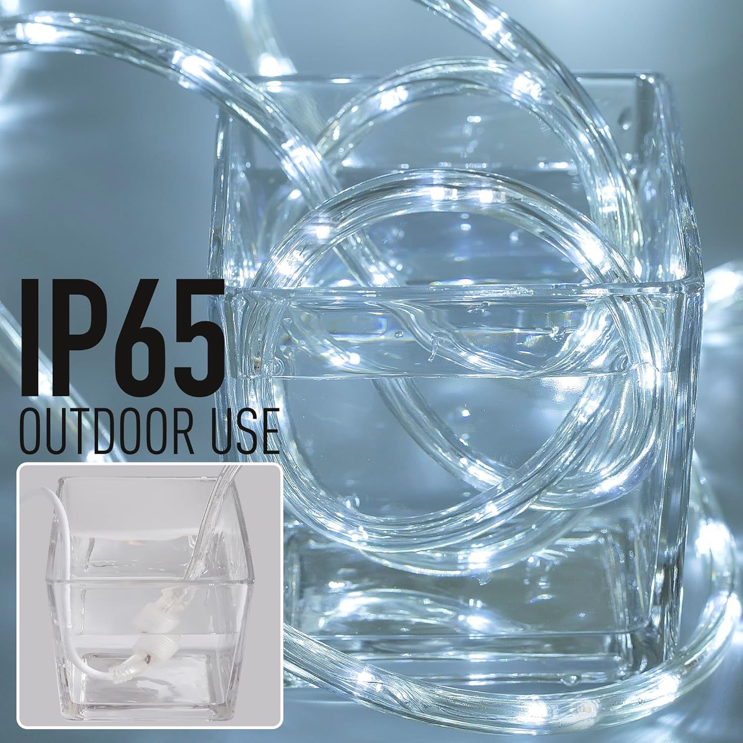 Waterproof LED Rope Lights, Connectable & Flexible with 8 Modes, Outdoor Lighting for Deck, Garden, Pool, Patio & Christmas Decor (White, 100ft)