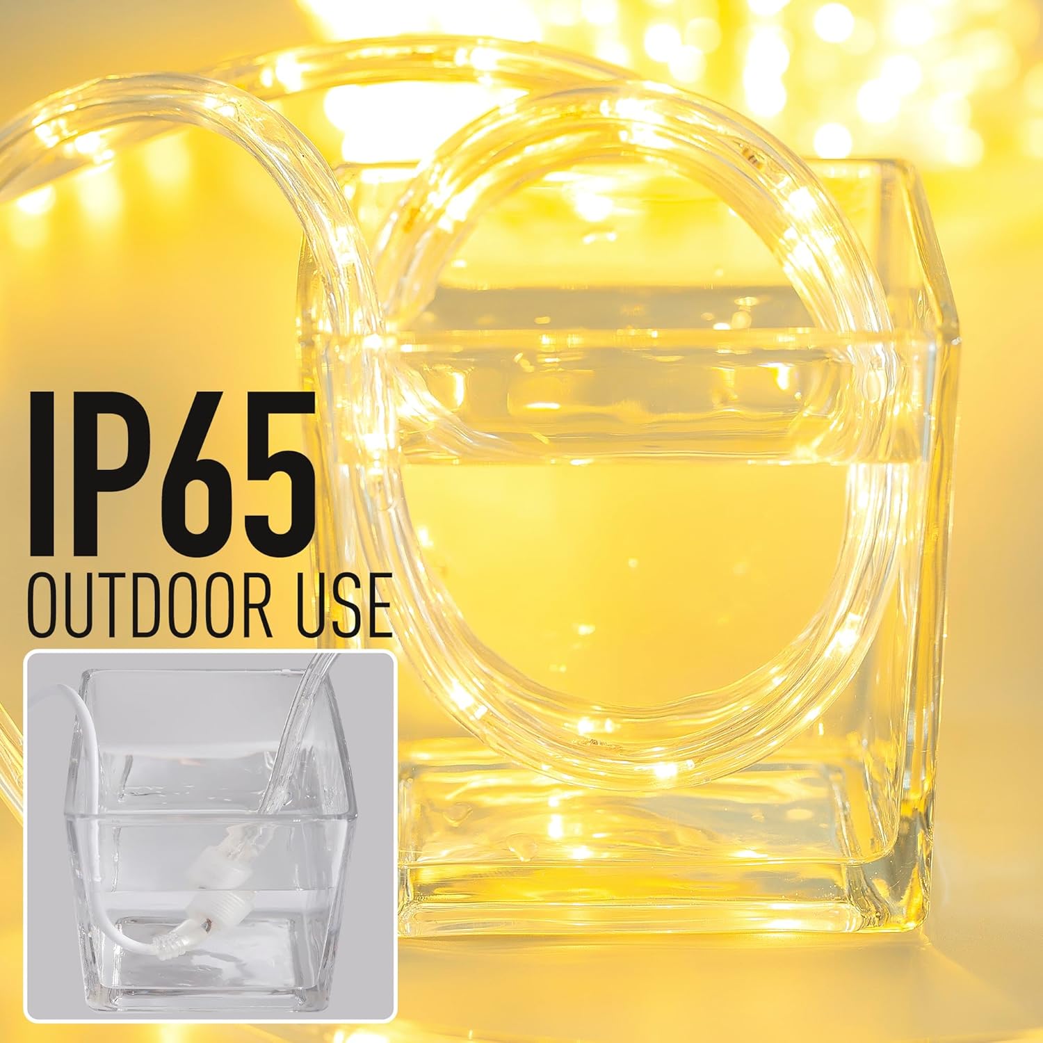 Waterproof LED Rope Lights, Connectable & Flexible with 8 Modes, Outdoor Lighting for Deck, Garden, Pool, Patio & Christmas Decor (Warm White, 50ft)