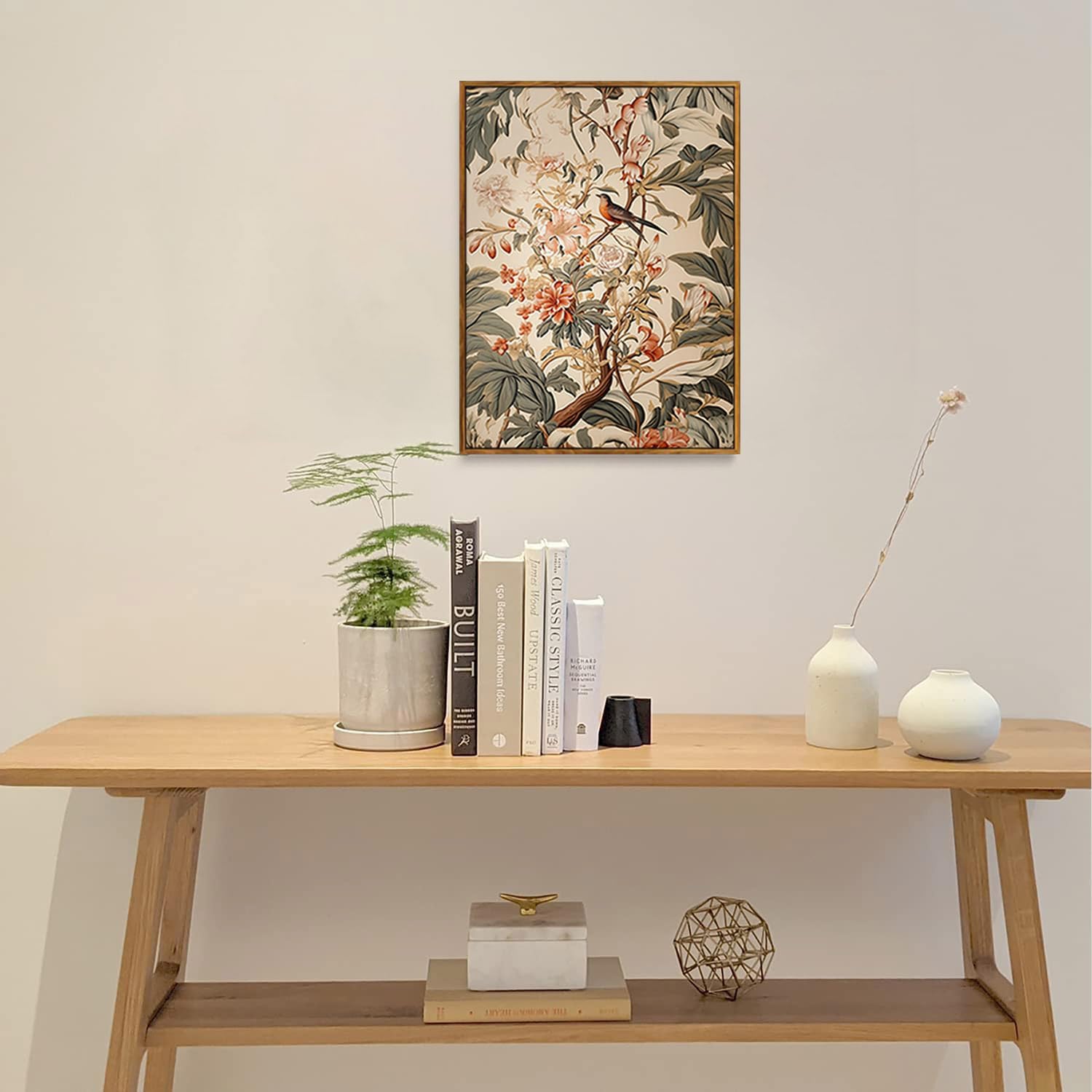 Djmwtb Vintage Framed Wall Art Floral Bird Canvas Wall Art Prints Botanical Flower Painting Nature Pictures Artwork for Bedroom Living Room Office 12x16in