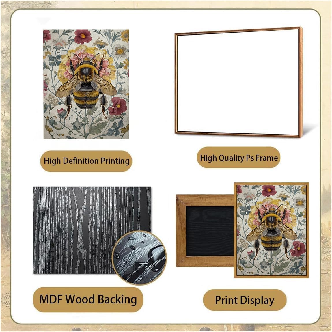 • Bee Wall Art:High-quality fade-resistant inks and a sturdy vintage-style frame ensure the painting will last for years. The frame design is simple and elegant, perfectly matching the painting. Excellent color reproduction and structural details ensure that every element of the design is pleasing to the eye, showing the true beauty of the vintage mural.