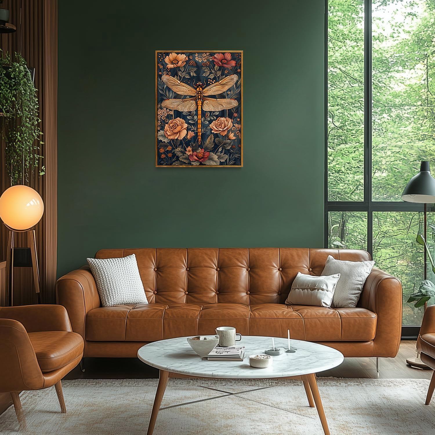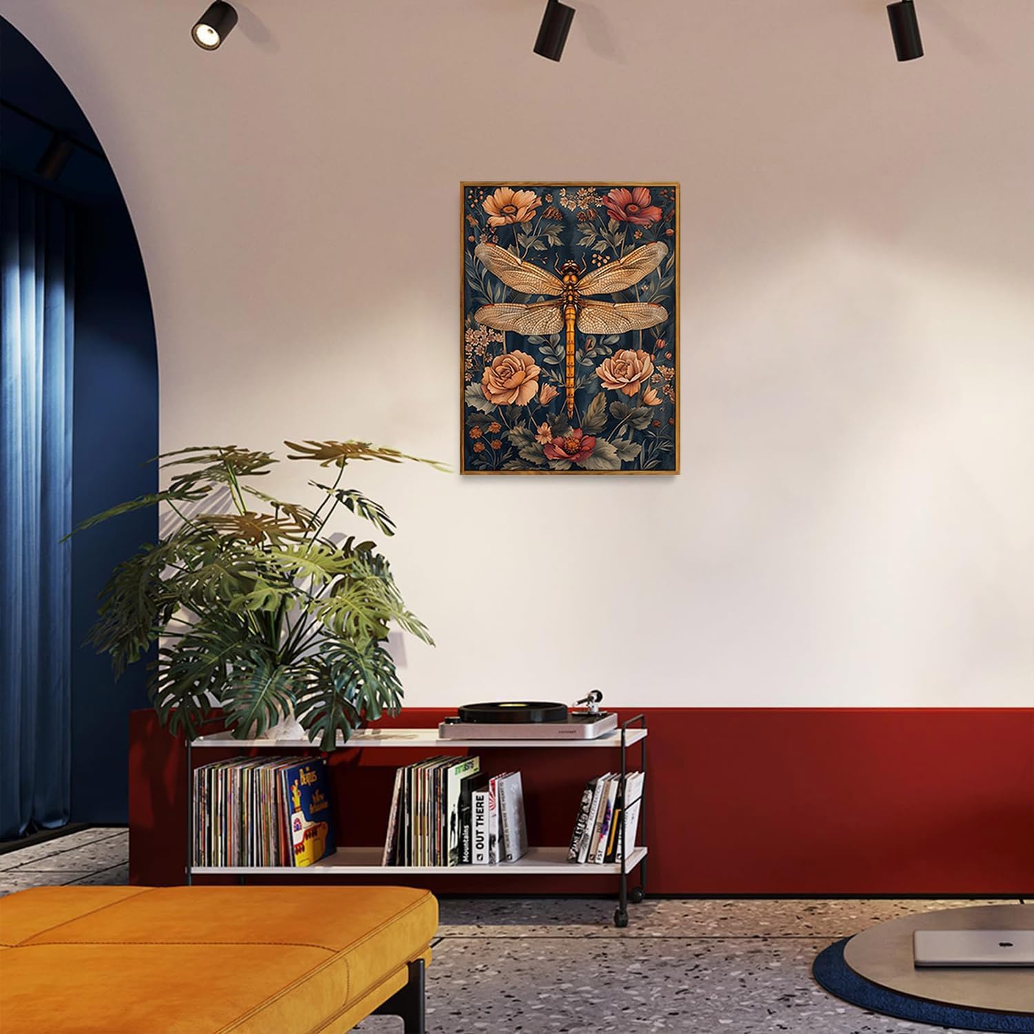• Vintage Wall Art:This mural combines classic vintage style with exquisite dragonfly and botanical floral patterns to create a unique vintage atmosphere, adding elegance and natural atmosphere to your home. It is a perfect art piece for bedroom, office, living room or study.