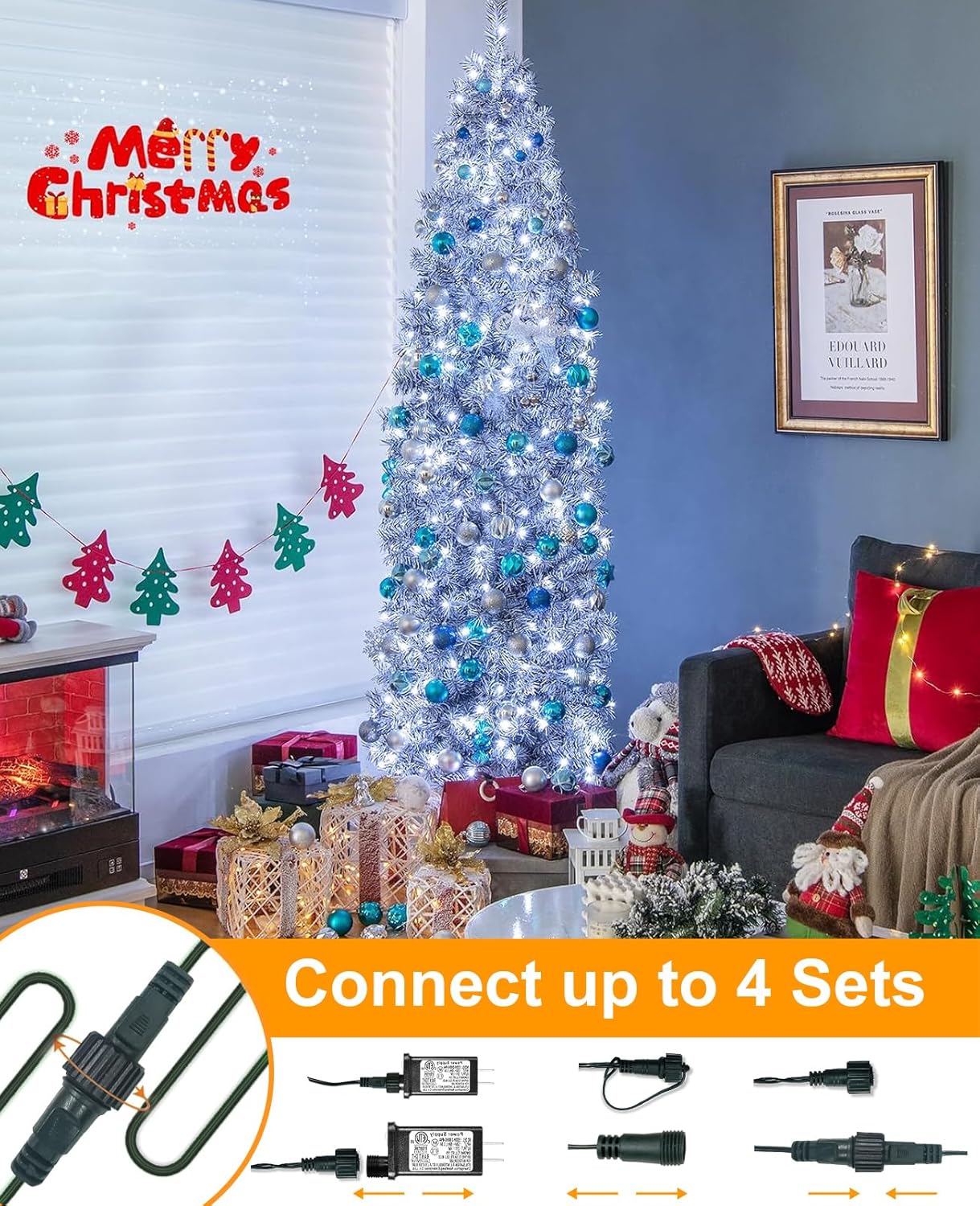 - 【Connectable Christmas Lights】The led Christmas Lights are 90ft in total length, with 80ft of strings containing 240 LEDs and 10ft of lead wire. Each string light indoor has end-to-end connections, up to 4 sets (320 feet) can be connected to illuminate a larger area. Ideal for decorating Christmas trees, bedrooms, patios and gardens.