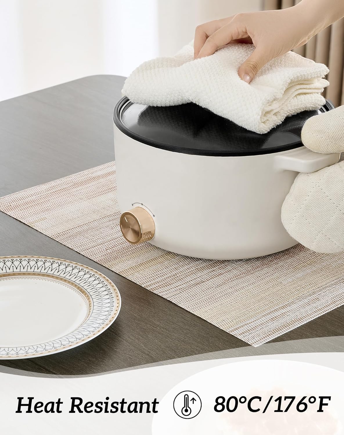 • Protects Your Table: Keep your table safe from scratches and spills with our heat-resistant placemats. They can withstand temperatures up to 176℉(80℃) and help keep food warm. Add style to your dining setting while ensuring table protection