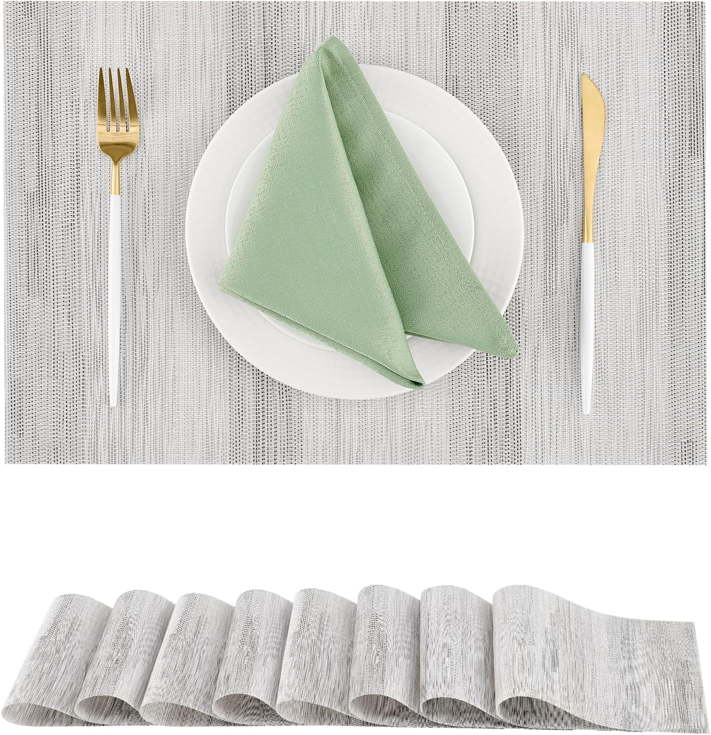 Leetaltree Lightsteel Black Placemats Set of 8 - Heat Resistant Non-Slip Place mats for Dining Table, Washable Durable PVC Vinyl Woven Table Mats (Lightsteel Black, 8)