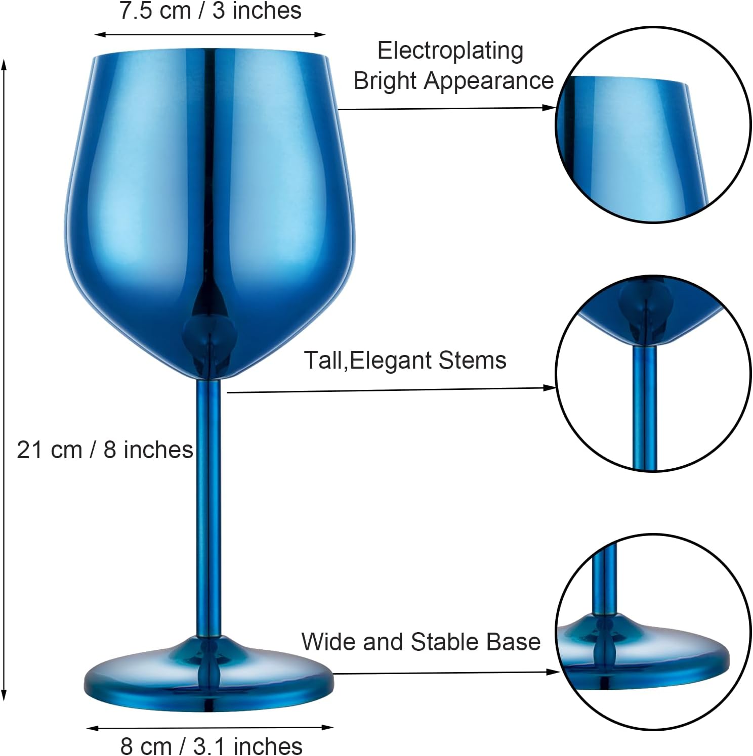 • 【Luxurious & Refined】Hand-polished to perfection, these stainless steel wine glasses feature premium electroplated coloring and a striking metallic finish. With a generous 18-oz capacity and a weighted flat base for superior stability, the sleek stem elevates both elegance and functionality—effortlessly aerate your wine with a graceful swirl