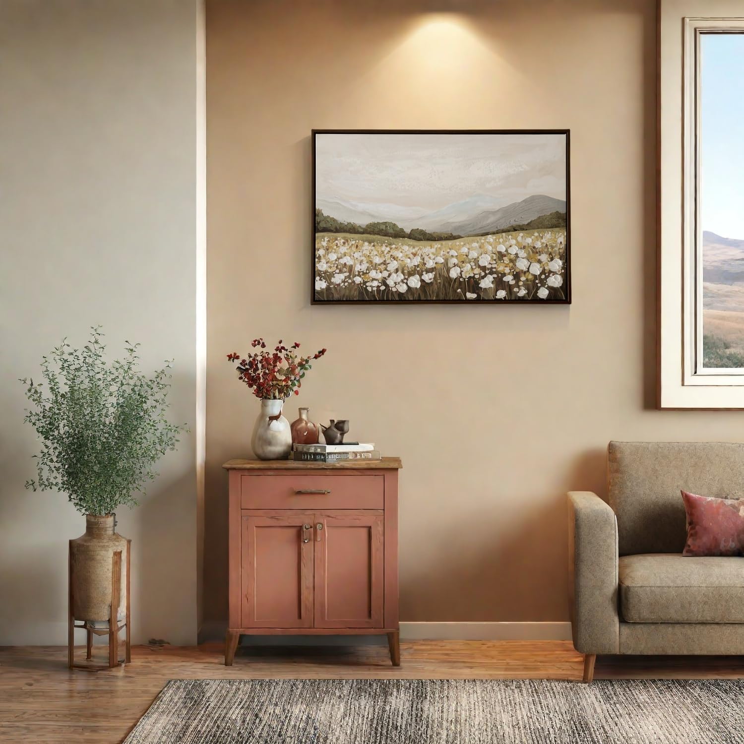 • 【Framed and Easy to Hang】Each panel of Vintage Flower Meadow Framed wall art already stretched on solid wooden frames, gallery wrapped, And it comes with an outer frame ,hook is already mounted on the stretcher bar,ready to hang.
