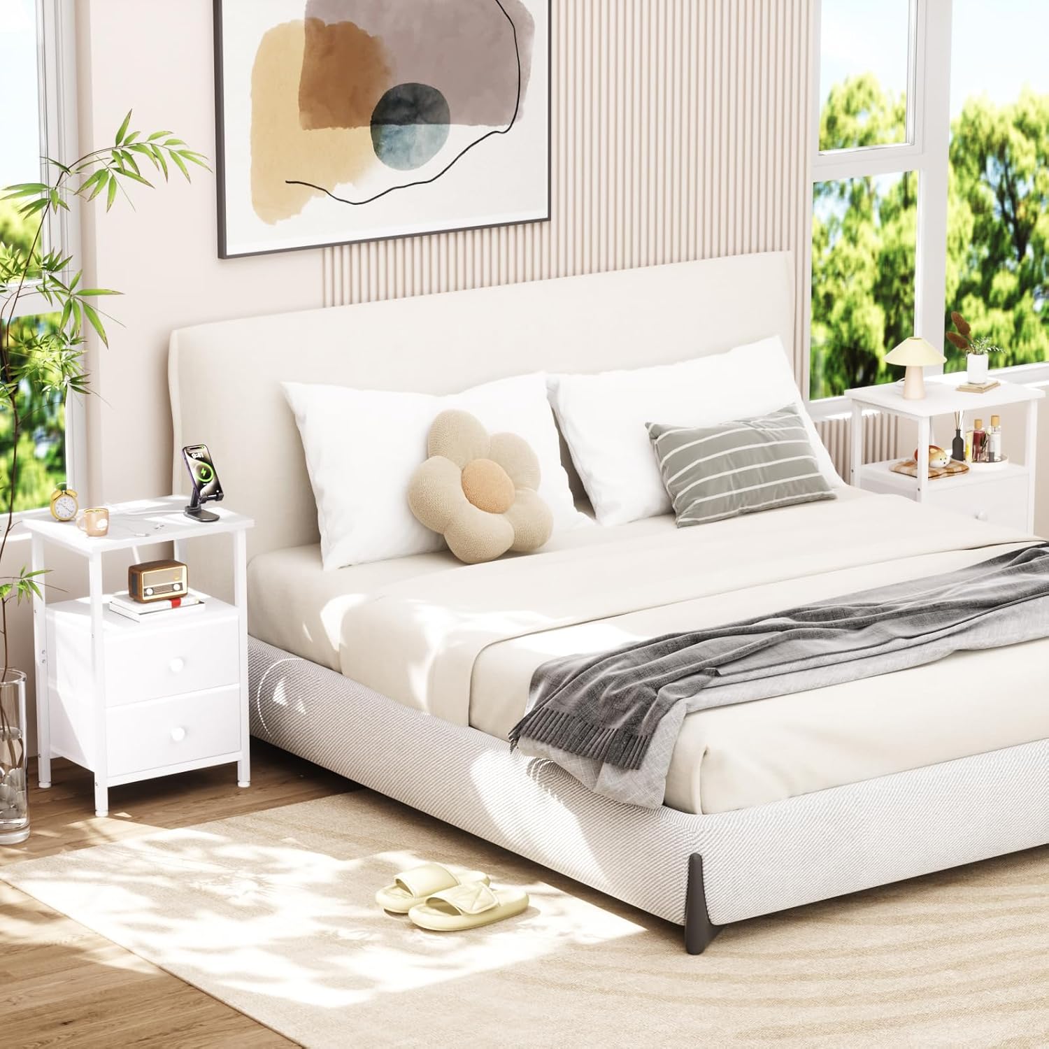 - Smart Storage for Clutter-Free Living: Transform your space from chaotic to curated! The breathable 2 fabric drawers swallows bedside clutter - think charging cables, sleep masks, and midnight snacks - while keeping them dust-free and within reach. Pair it with the open shelf for books or decorative baskets to maintain a minimalist vibe. Finally, a nightstand that actually organizes your life instead of hiding the mess