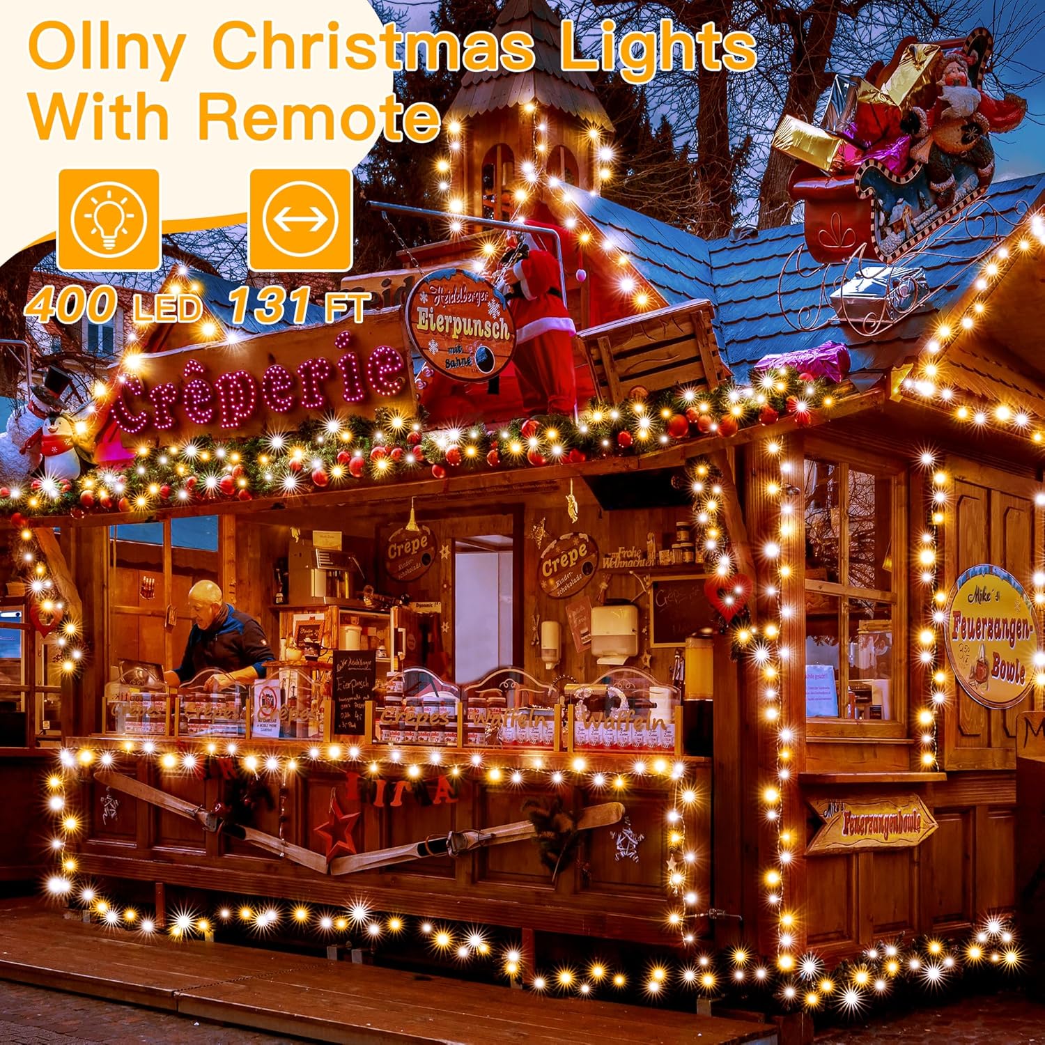 • What You Get: 1x 400 LED warm and white holiday lights outdoor; 1 x remote control; 1 x UL listed plug; 1 x user manual; 12-month friendly customer service and 24 hours email response have