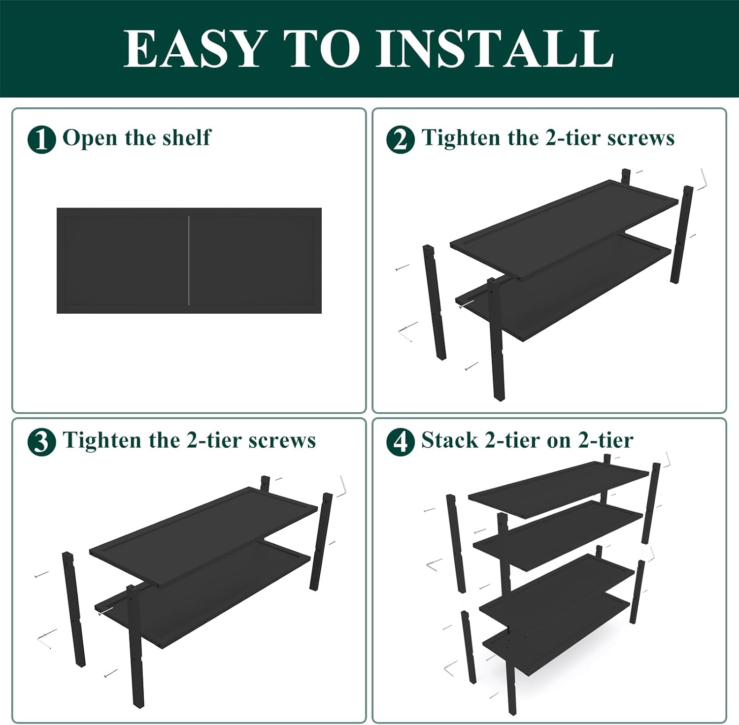 • Stackable & Expandable: Combine two or more racks for extra storage, or use individually for flexible organization