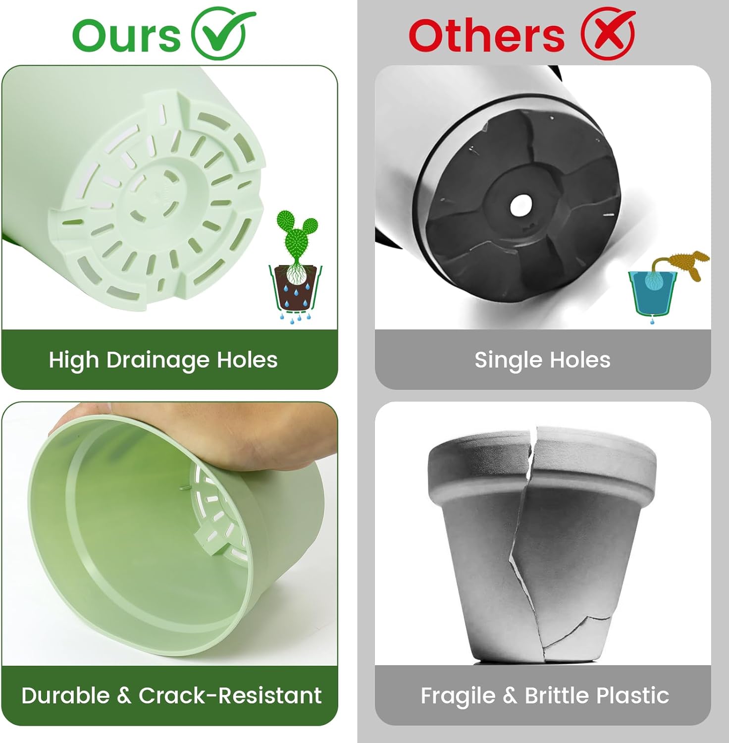 • [Drainage System Designed for Healthy Roots] These 6 inch plant pots feature multiple drainage holes at the bottom to promote airflow and prevent waterlogging. Matching saucers help catch excess water and reduce mess, making them ideal plant pots with drainage for both indoor and outdoor use.
