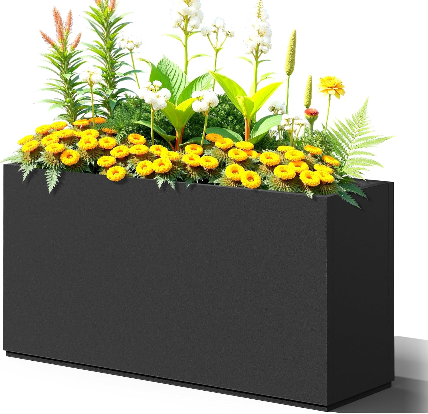 - Healthy Plants Start Here: Carefully crafted, this Black planter box features an efficient drainage system and a flexible removable divider that effectively prevents excessive water accumulation, avoiding root rot and ensuring the best health for your plants. Whether used as stylish patio pots or as a charming addition to your garden, this planter brings vibrant life to your green world.