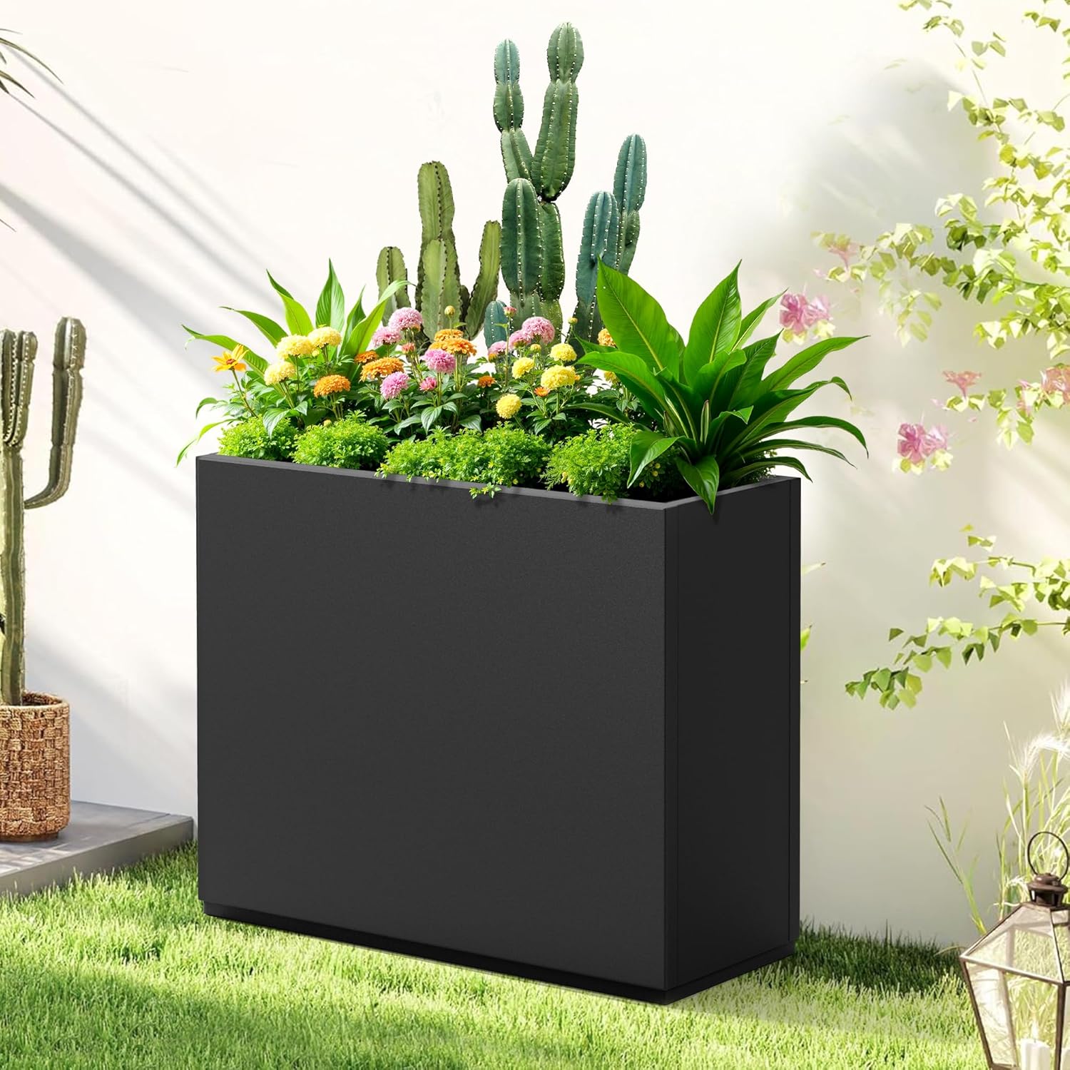 - Healthy Plants Start Here: Carefully crafted, this Black planter box features an efficient drainage system and a flexible removable divider that effectively prevents excessive water accumulation, avoiding root rot and ensuring the best health for your plants. Whether used as stylish patio pots or as a charming addition to your garden, this planter brings vibrant life to your green world.