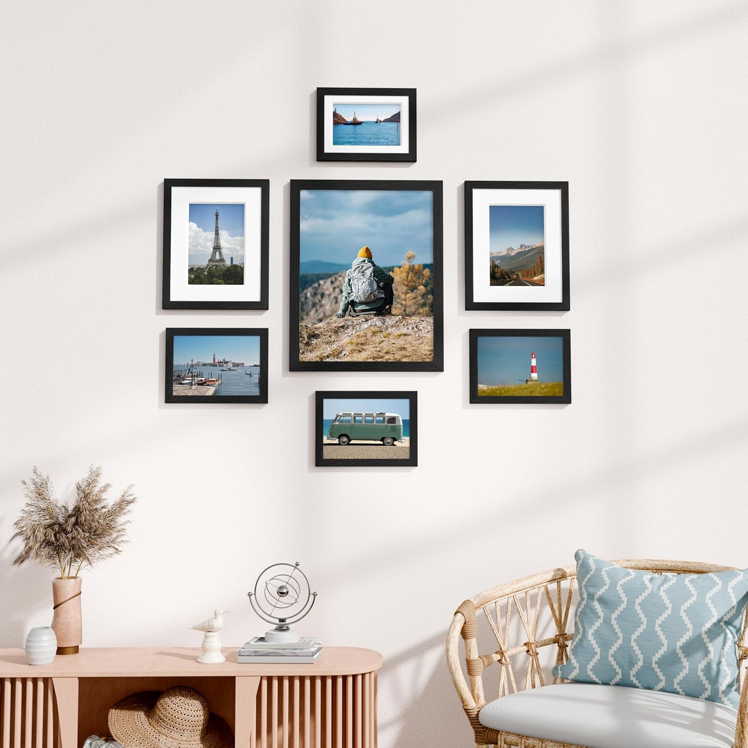 • Multi Sizes for DIY: Vittanly 7-Pack multi sizes black picture frame set includes 1pcs 11x14, 2pcs 8x10 and 4pcs 5x7 frames. You can freely combine the photo frames. Gallery wall frame set can be used to decorate different spaces at the same time