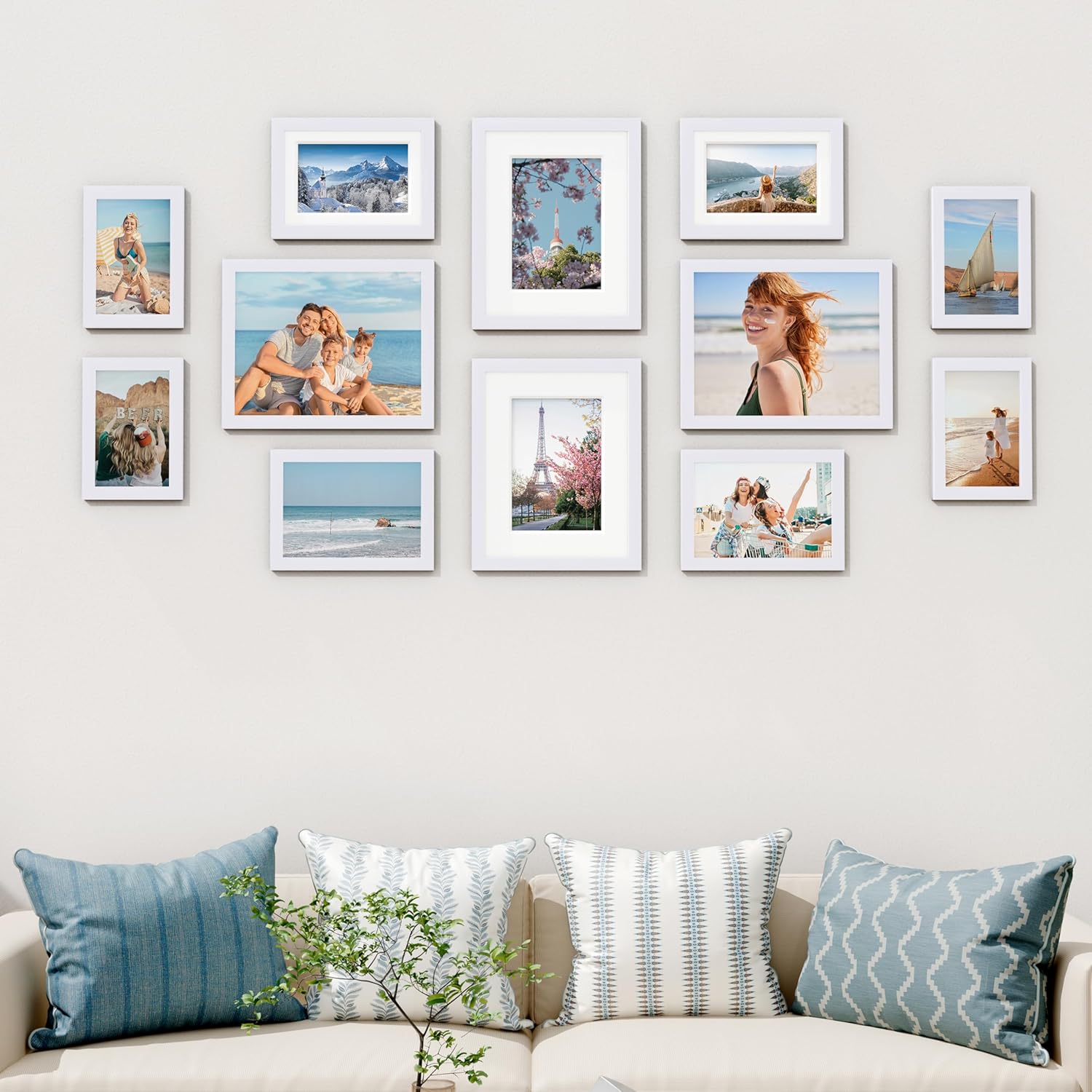 Vittanly Picture Frames Collage Wall Decor for Mounting or Tabletop Display, Gallery Wall Frame Set for Family, Multi Sizes Including 4pcs 8x10, 4pcs 5x7, 4pcs 4x6, White