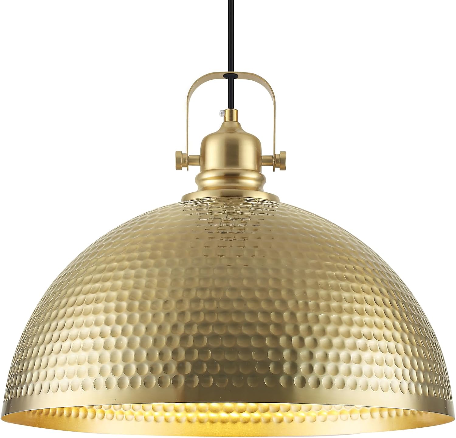 1 Pack Gold Pendant Light 16 inch, Hammered Large Dome Pendant Light, Industrial Farmhouse Pendant Lights Kitchen Island, Gold Island Pendant Lights for Kitchen, Dining Room Living Room