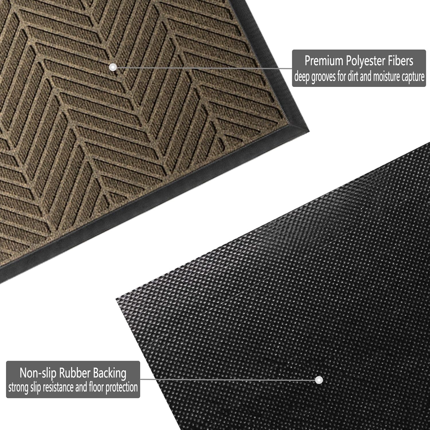 • Premium Materials: The front door mat is made of polyester fibers with deep grooves, and fade-resistant and stain-resistant polyester withstands heavy foot traffic for longer lasting
