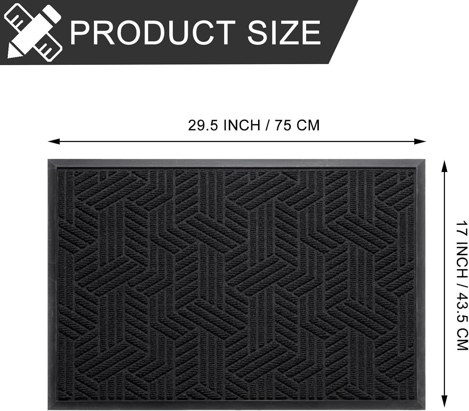 Front Door Mat 29.5"x17" Indoors Outdoors Welcome Mats, Waterproof Non-Slip Rubber Backing Heavy Duty Doormat Outside Entrance, Low Profile Entryway Rugs Floor Mat for Patio, Pattern B Black
