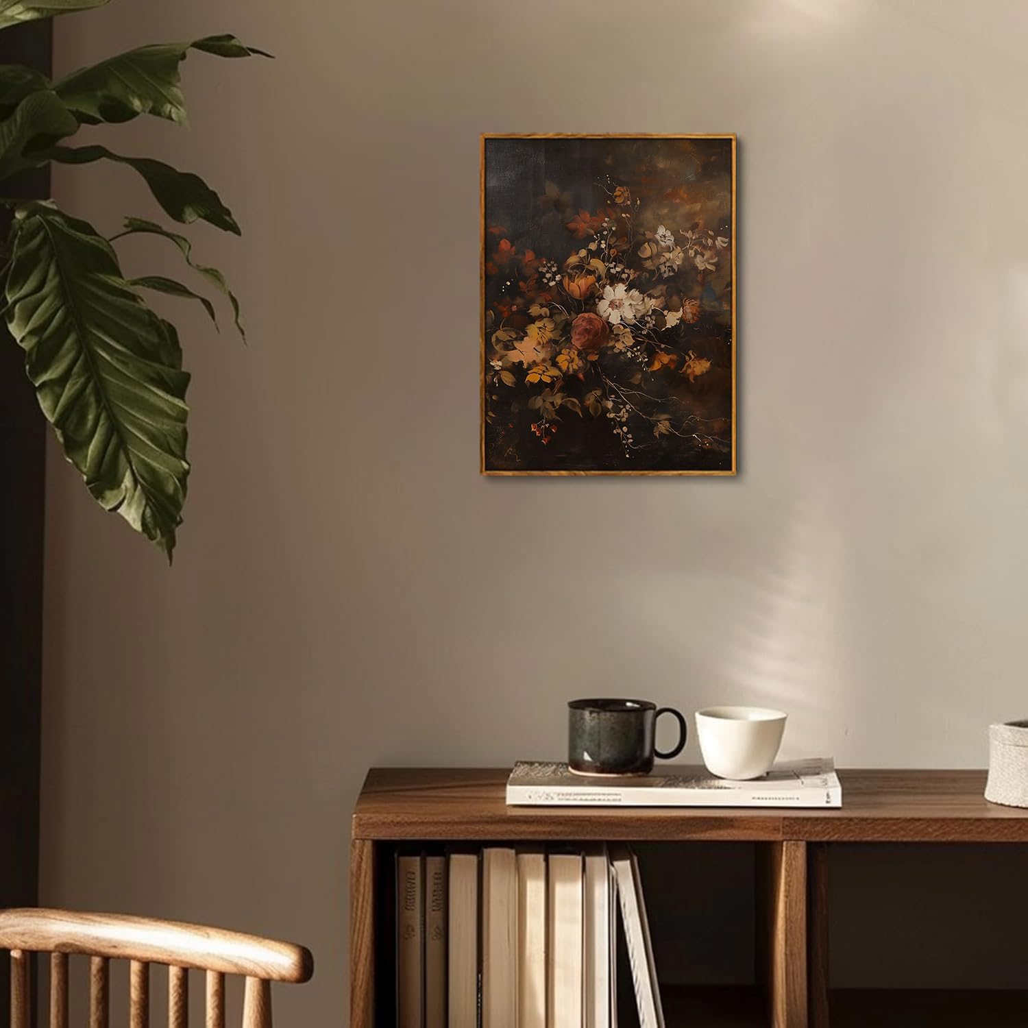 Djmwtb Vintage Framed Wall Art Dark Floral Canvas Wall Art Prints Moody Botanical Painting Flower Pictures Wall Decor Artwork for Living Room Bedroom Bathroom Office 8x10in