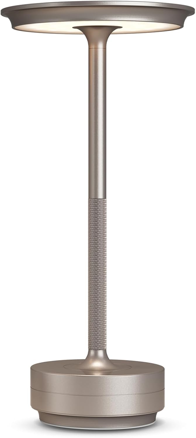 Rechargeable Cordless Table Lamp, Portable 5000mAh LED Touch Table Light, 3 Color Stepless Dimming Battery Powered Table Lamp for Outdoor/Restaurant/Patio.(Champagne Gold)