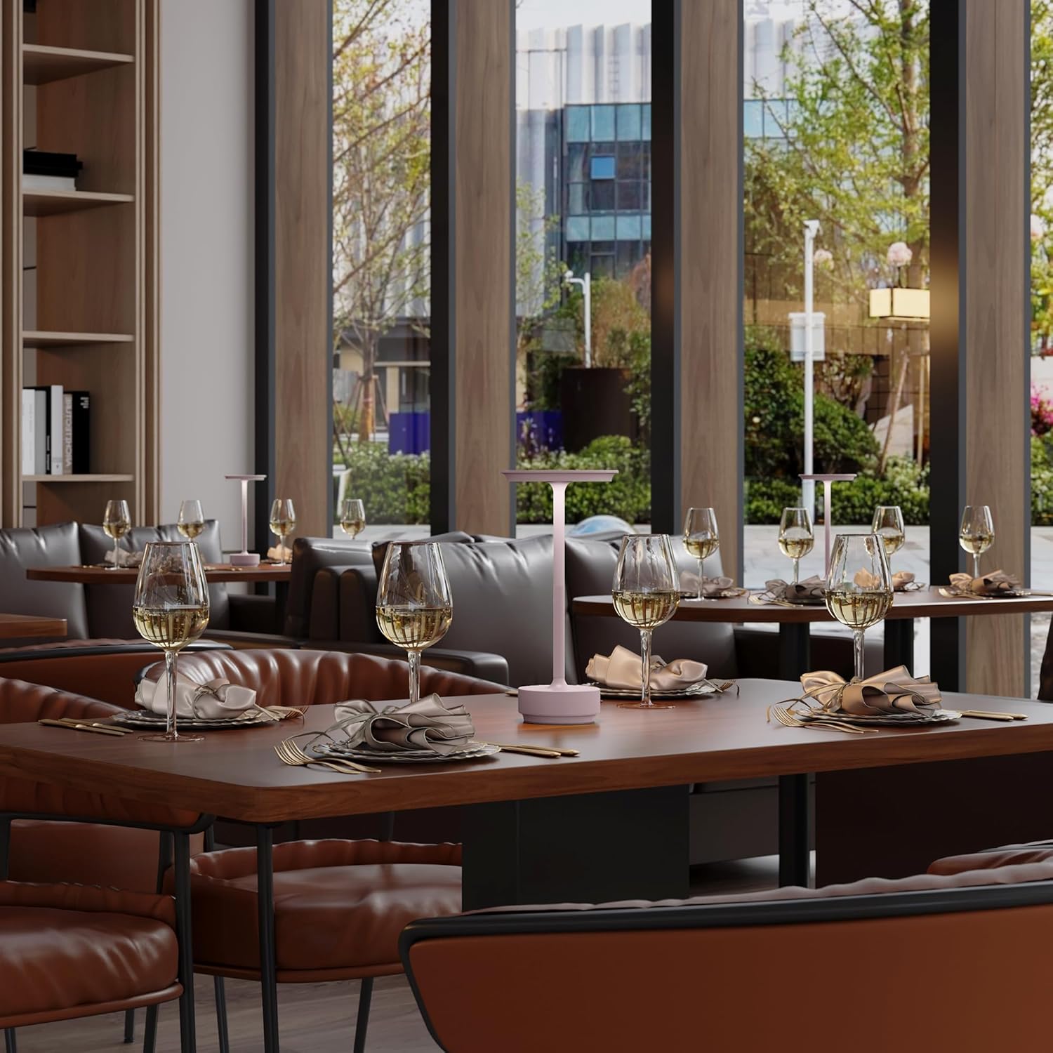 Rechargeable Cordless Table Lamps, 5000mAh Portable LED Table Light, 3 Color Stepless Dimming Battery Powered Metal Table Lamp for Outdoor Patio/Bedroom/Restaurant.(Light Pink)