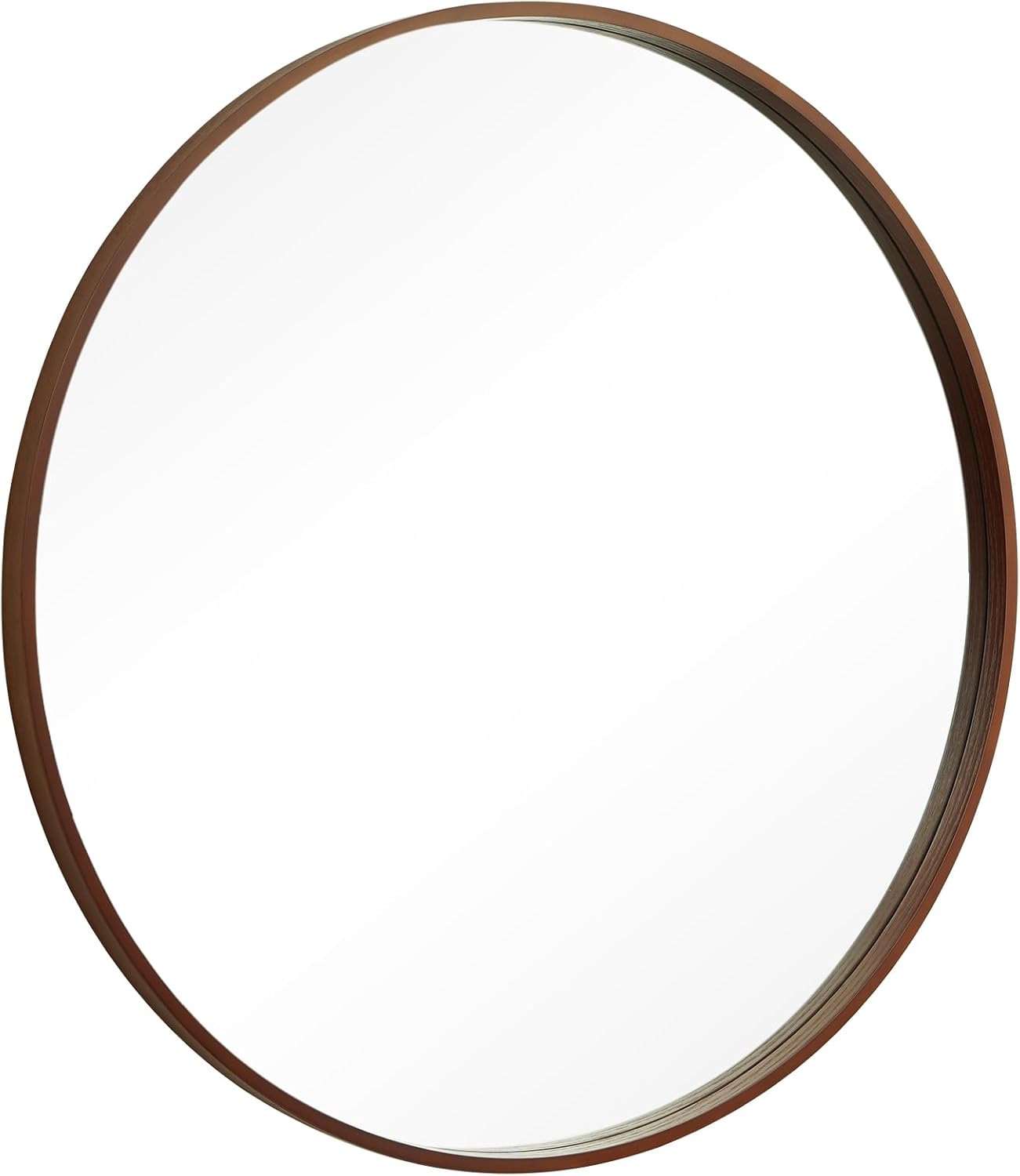 WallBeyond Round Wood Mirror, 36" Round Modern Decoration Large Circle Wall Mirror for Bathroom Living Room Bedroom Entryway, Walnut