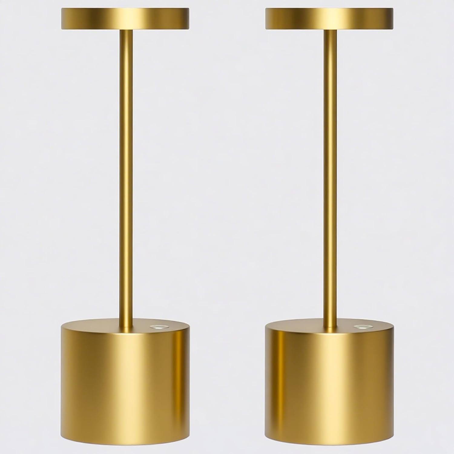 2 Pack Cordless Rechargeable Table Lamp, 3 Color Temperature & Dimmable, IP54 Waterproof Battery Operated Portable LED Light for Outdoor, Patio, Restaurant, Bedside, Shower (Glossy Gold)