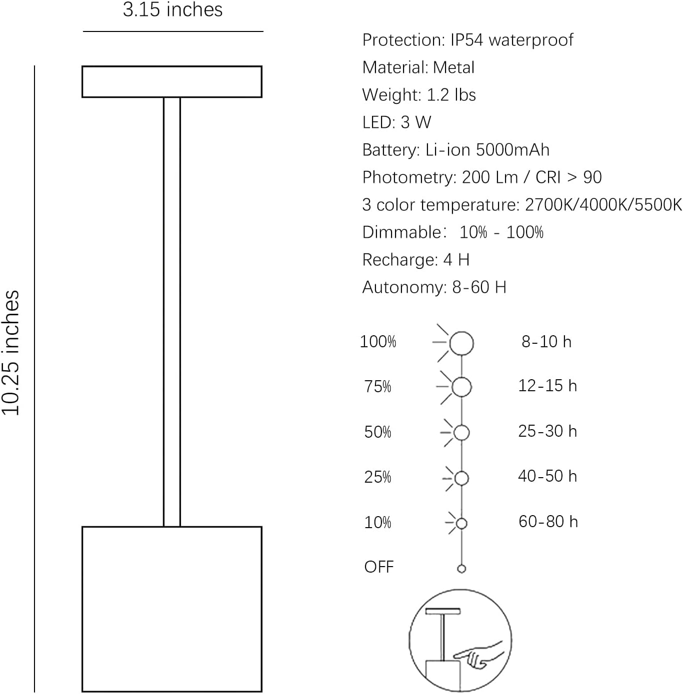 - Cordless & Long-Lasting Rechargeable Battery: Powered by a built-in 5000mAh rechargeable battery, Barryca cordless lamp offers extended runtime from 8 hours at full brightness to an impressive 60 hours at 10% brightness. Barryca portable lamp is ideal for outdoor dinners, picnics, power outages, and camping, providing reliable, cord-free light anywhere.