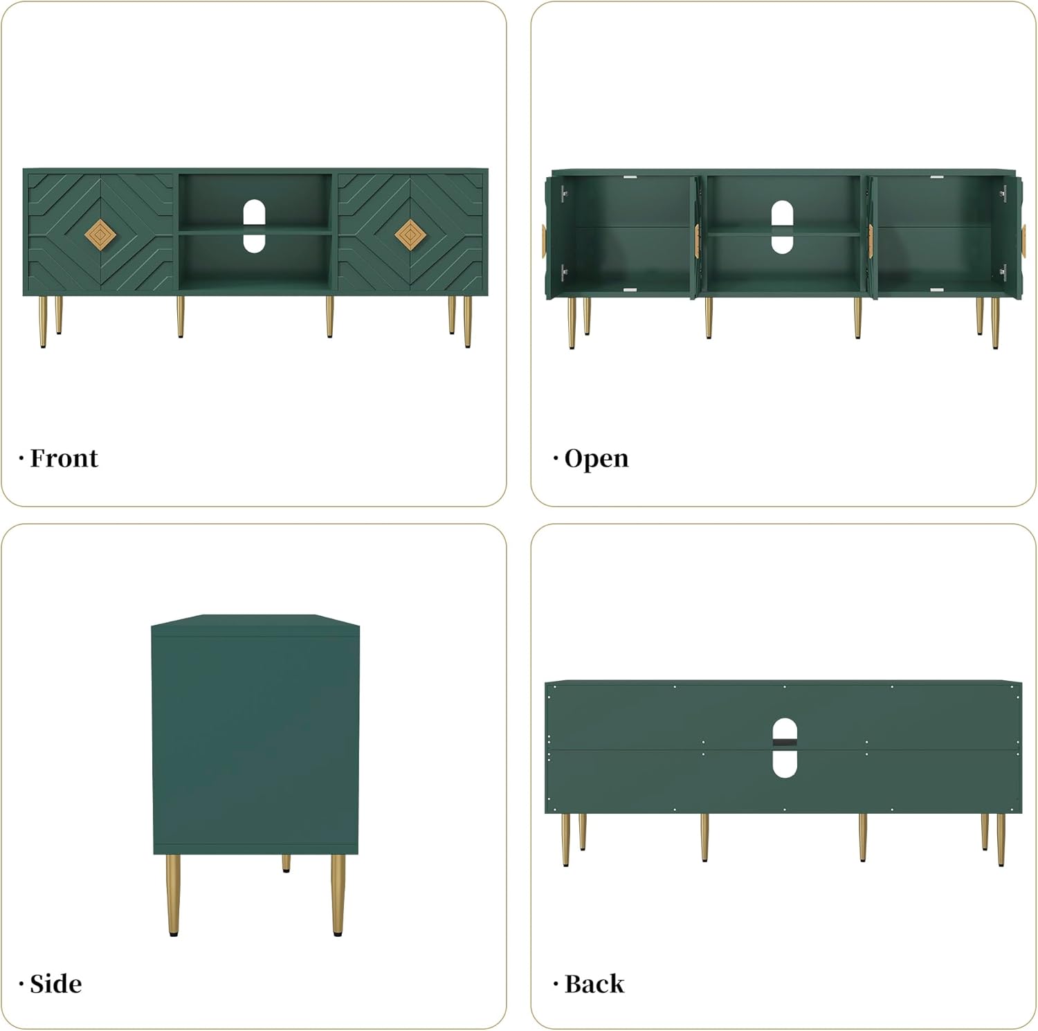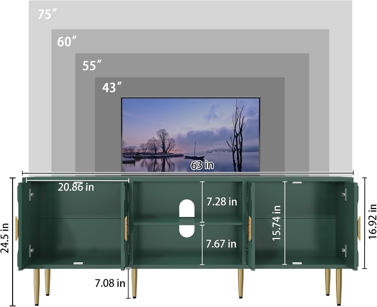 HLR 63'' Modern TV Stand for 65/70/75 inch TV, Entertainment Center with Storage Cabinet, Mid Century Green TV Stand,Embossed Pattern TV Console, TV Media Console for Living Room, Bedroom