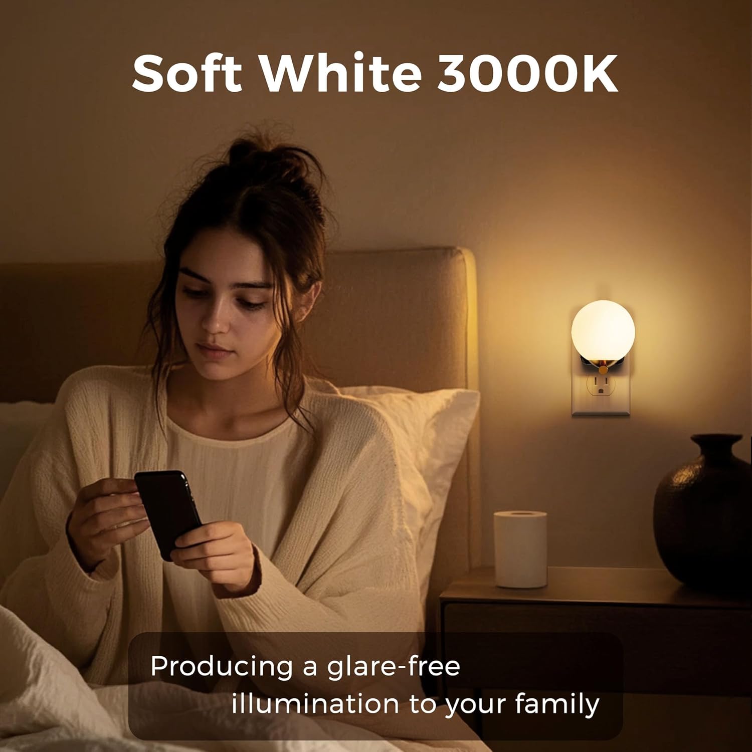 • Modern Night Light Design: The plug-in night light features a white ball shaped lampshade with an L-shaped base, providing comfortable 3000K warm white light to create perfect and excellent brightness lighting for bedrooms, bathrooms, corridors, or any room in the home