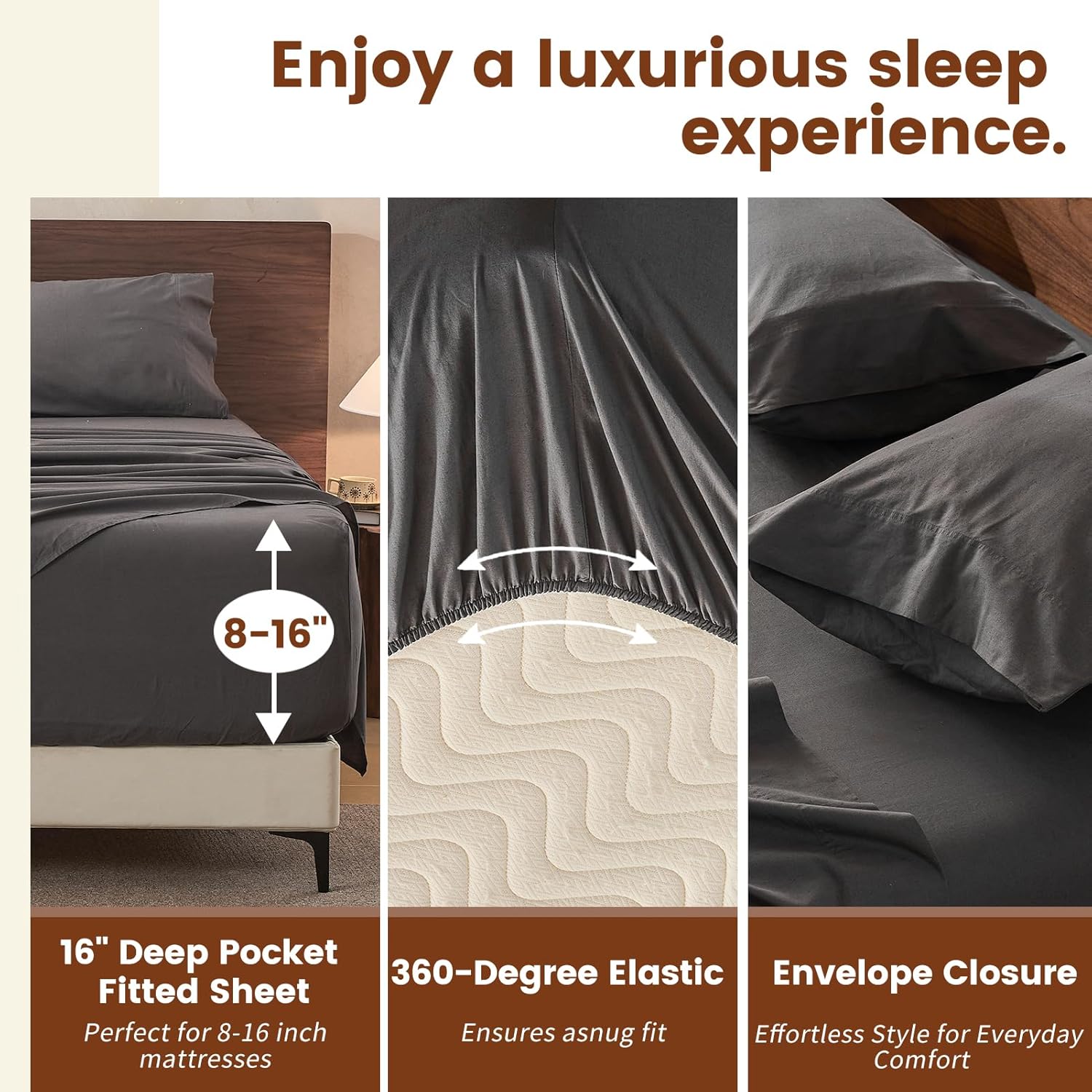 100% Linen Sheets King Size,Breathable & Durable 4-Piece Bed Flax Sheet Set,Soft All-Season Bedding for Hot Sleepers 16" Deep Pocket Oeko-TEX Certified,(King, Dark Grey)