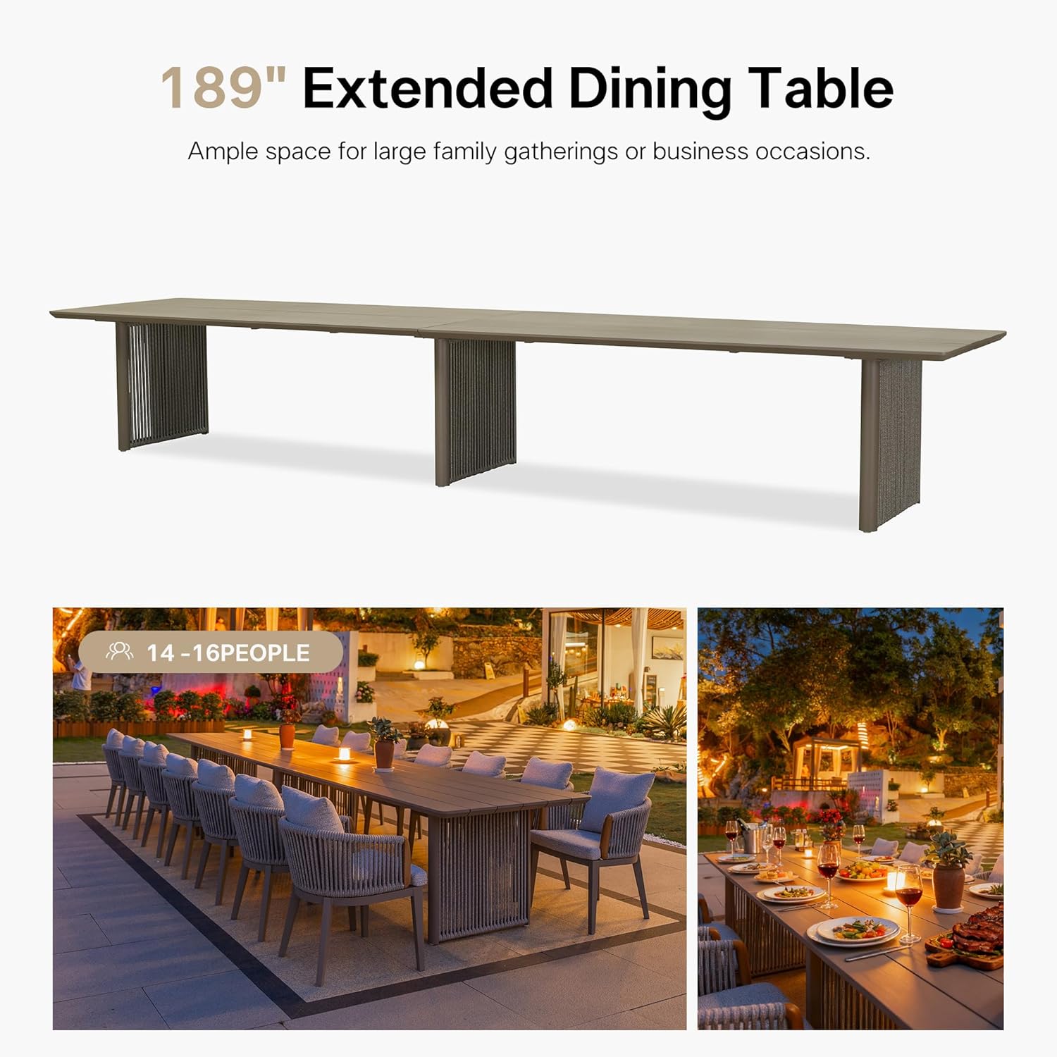• Complete 17-Piece Set: Includes 1 dining table (188.97"L x 40.16"W x 29.92"H) and 16 chairs (22.64"W x 21.26"D x 27.95"H), ideal for family and friends gatherings.